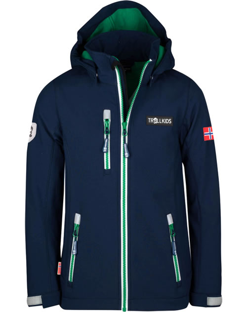 Trollkids Softshell-Jacke KIDS PREIKESTOLEN navy/cloudy grey/pep. green