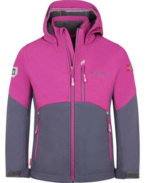 Trollkids Softshell-Jacket 'Girls Balestrand Jacket' mit abnehmbarer Kapuze - Fresh Berry/Graphite