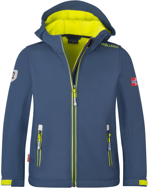 Trollkids Softshelljacke TROLLFJORD - Mystic Blue/Glow Green