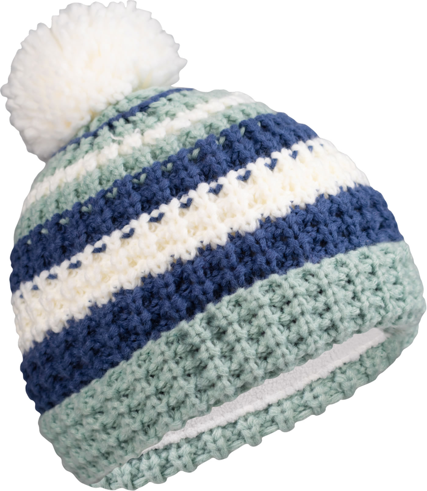 Die farbenfrohe Bommelmütze HALLINGDAL im bunten Streifen-Mix ist ein toller Begleiter für die kalte Jahreszeit. Von innen ist sie mit weichem Fleece gefüttert.