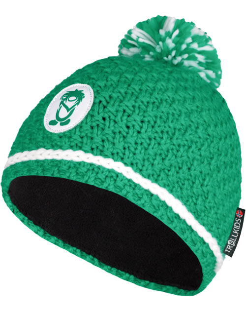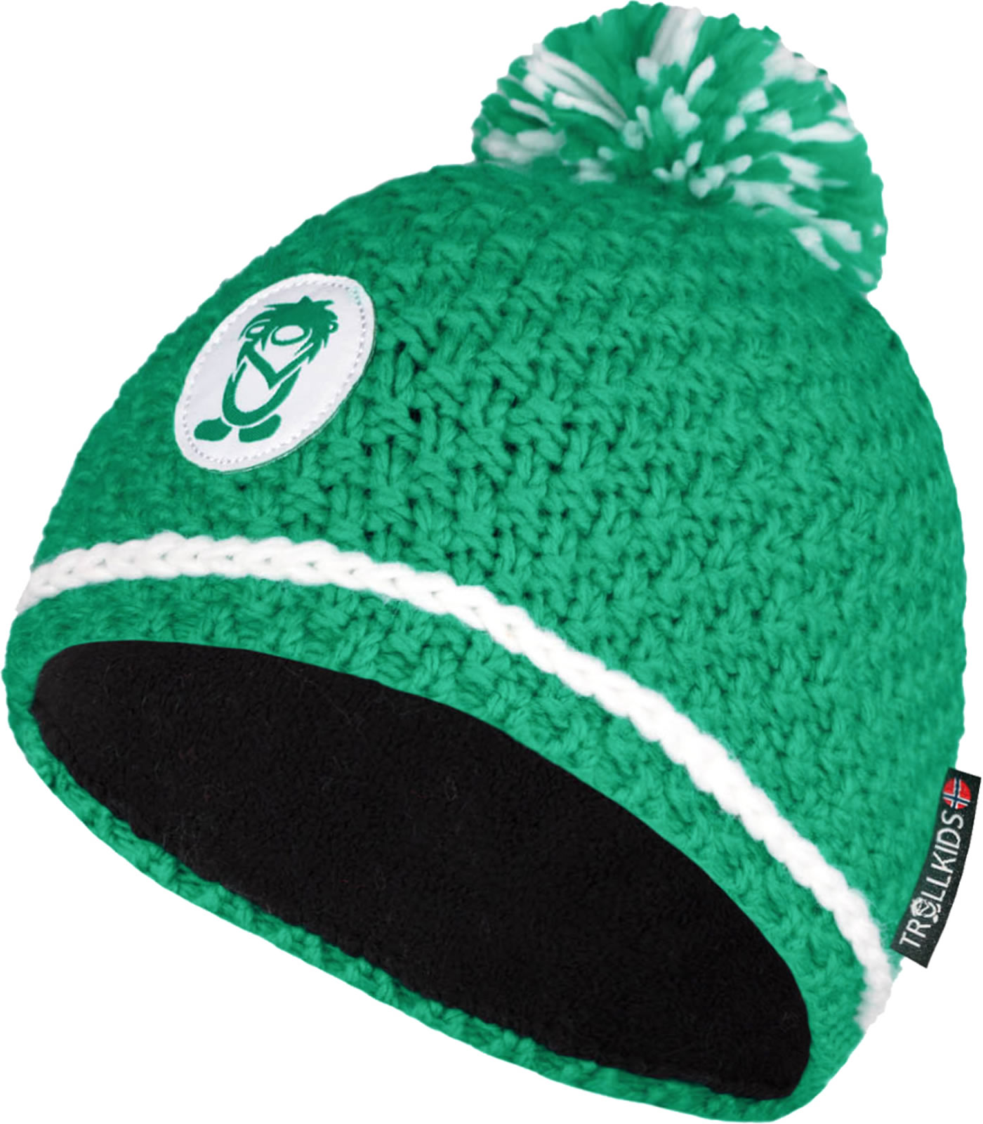 Trollkids Strick-Mütze GIRLS HEMSEDAL BOBBLE CAP peacock green/white