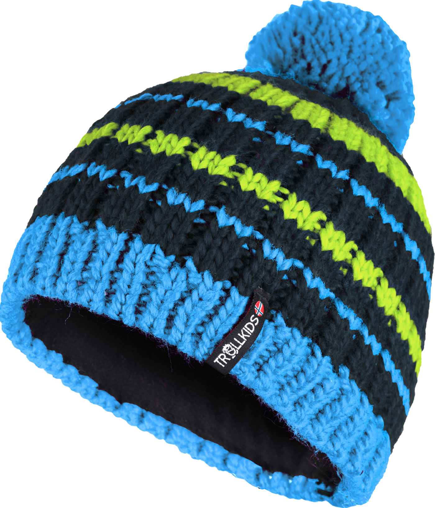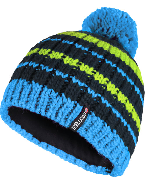 Trollkids Strick-Mütze Kids HAFJELL Bobble Cap - Night Sky/Vivid Blue/Cool Lime