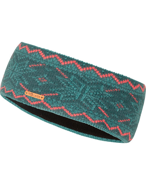 Trollkids Strick-Stirnband mit Norwegermuster GIRLS RAULAND - Midnight Petrol/Dusty Teal/Coral Pink