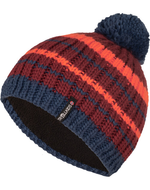Trollkids Strick-Mütze KIDS HAFJELL BOBBLE CAP - Mystic Blue/Carmin Red/Flame Orange
