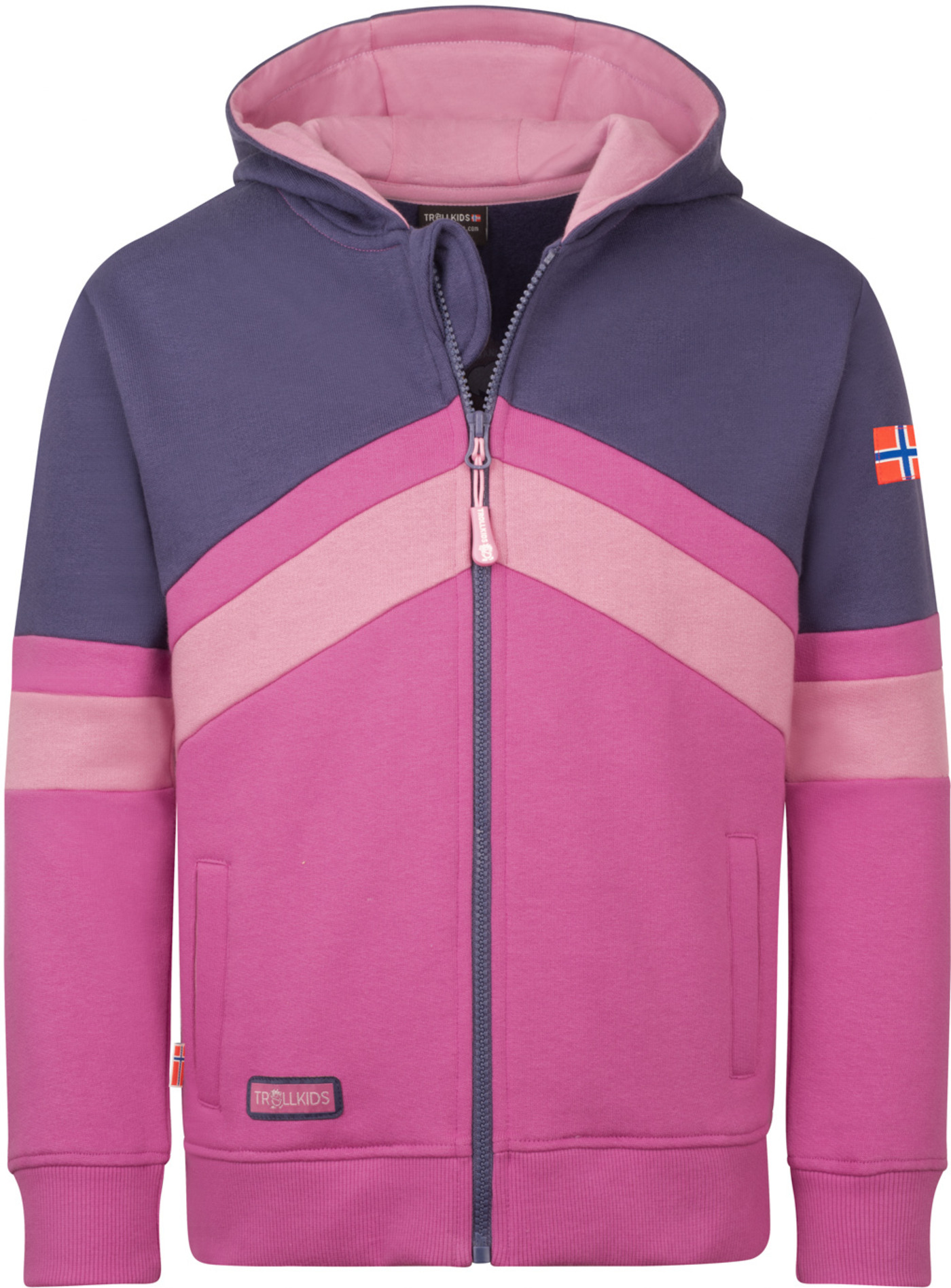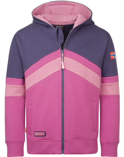 Trollkids Sweatjacke aus 100% Baumwolle GIRLS FLEKKEFJORD - Mallow Pink/Wild Rose/Violet Blue