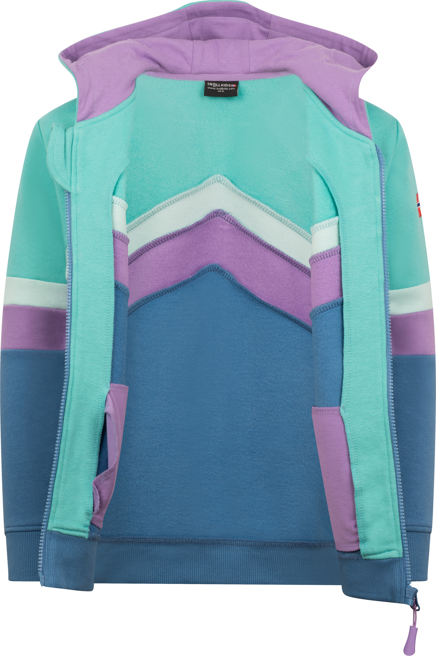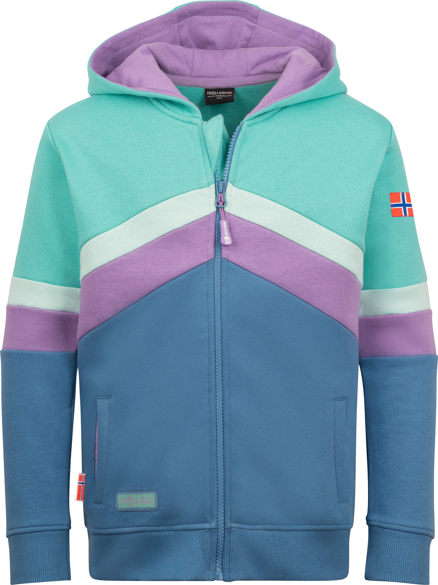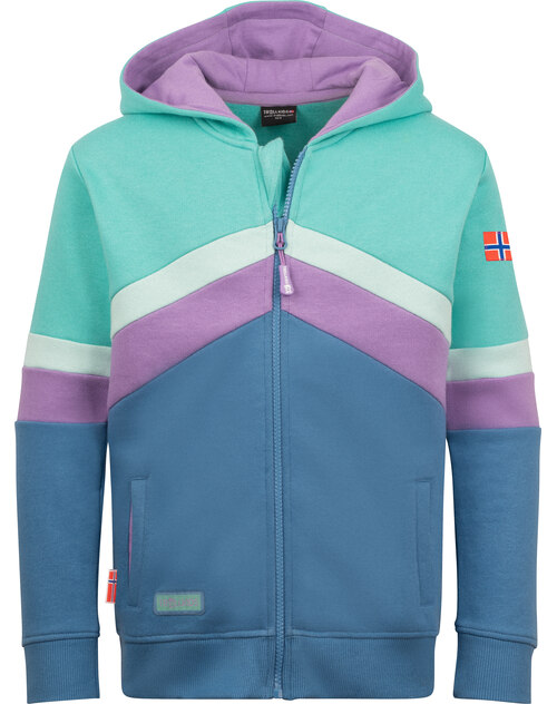 Trollkids Sweatjacke 'Flekkefjord' aus 100 % Baumwolle mit Kapuze - Aquamarine/Violet Sorbet/Cornflower