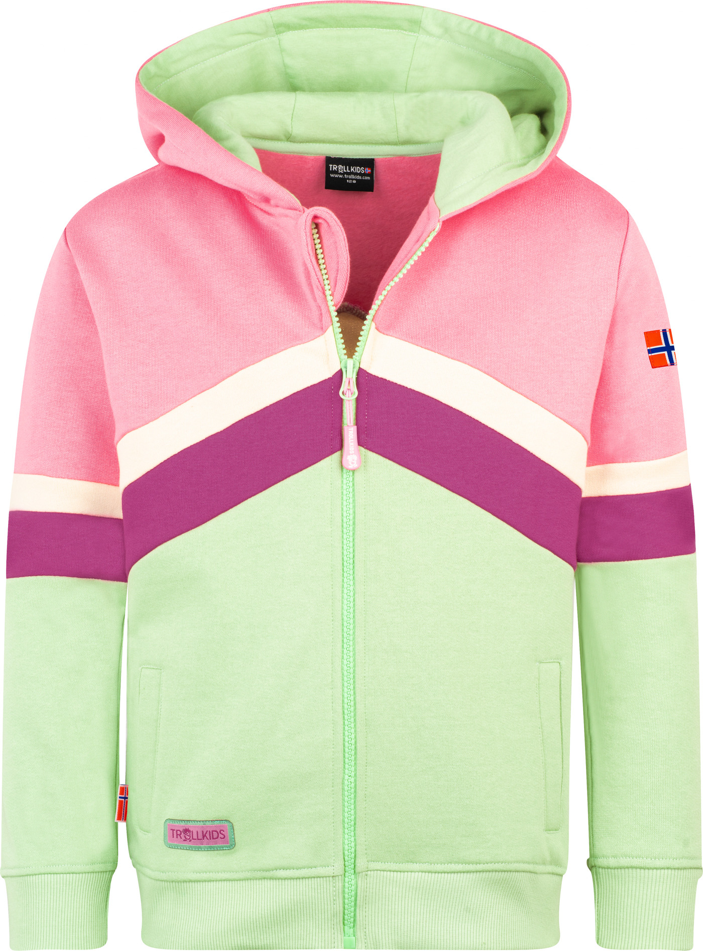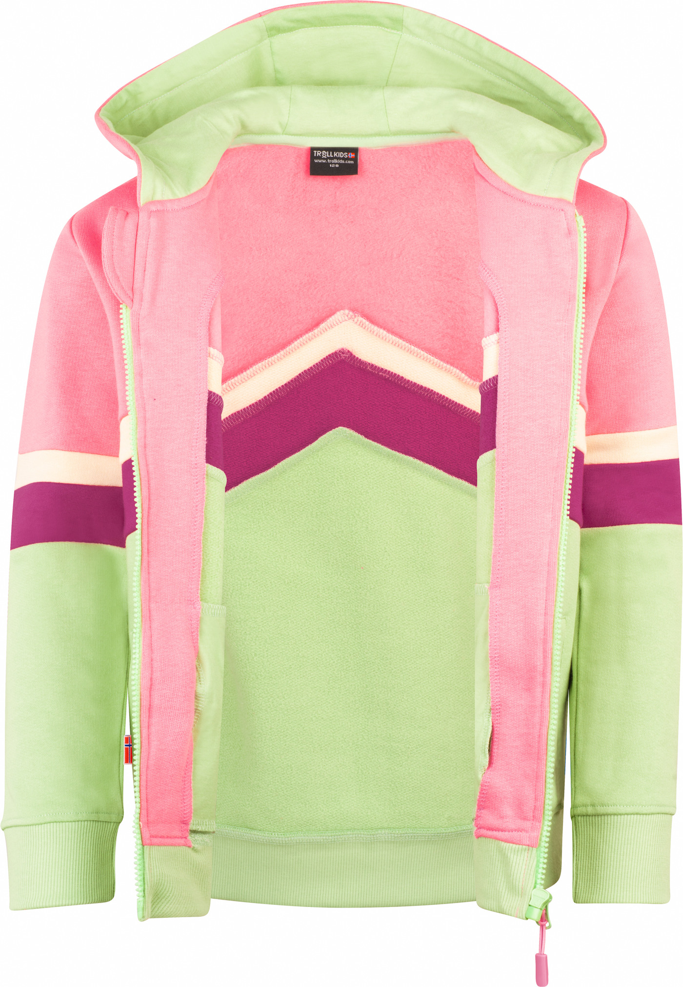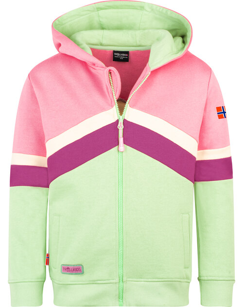 Trollkids Sweatjacke 'Flekkefjord' aus 100 % Baumwolle mit Kapuze - Candy Pink/Fresh Berry