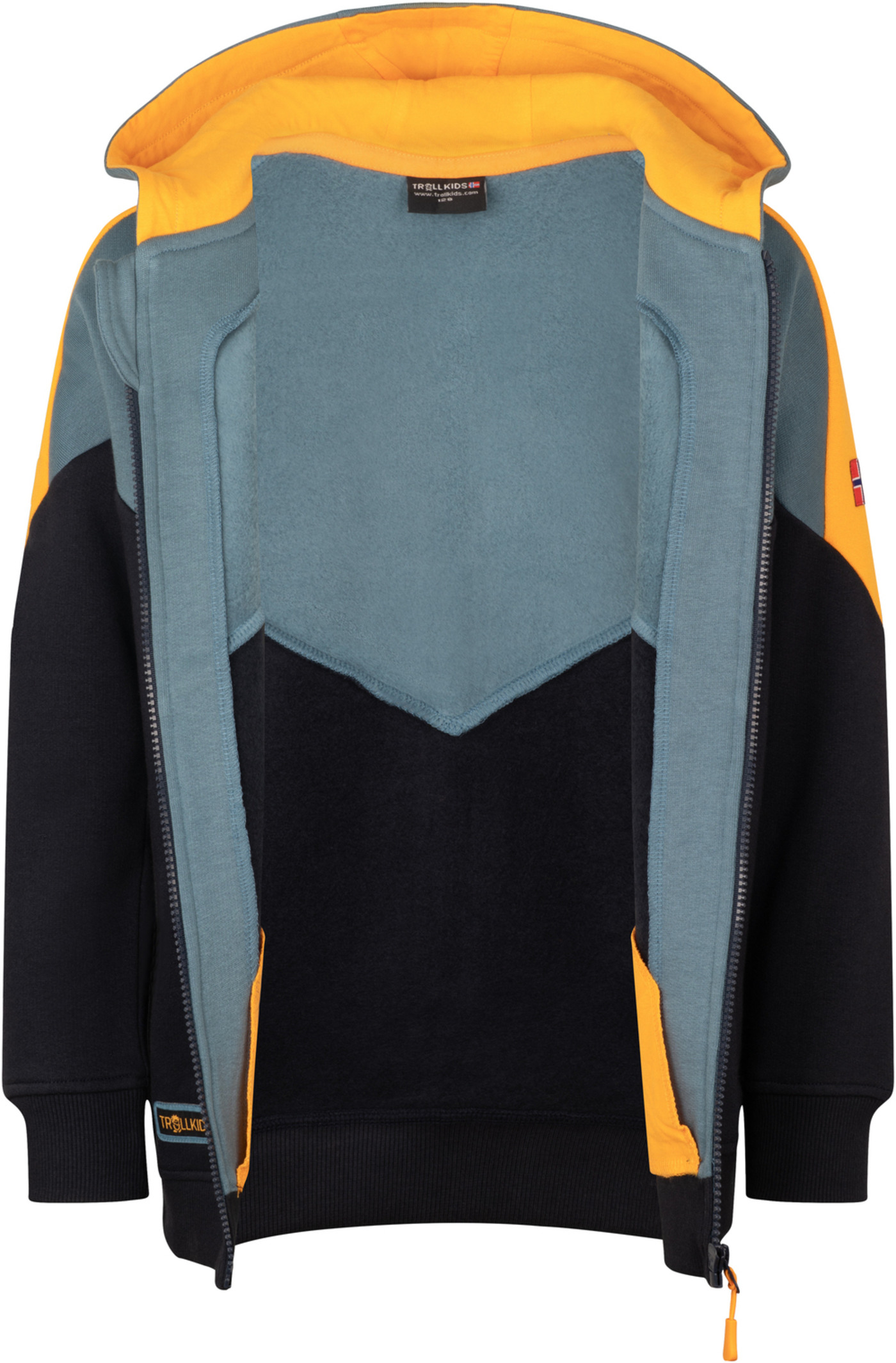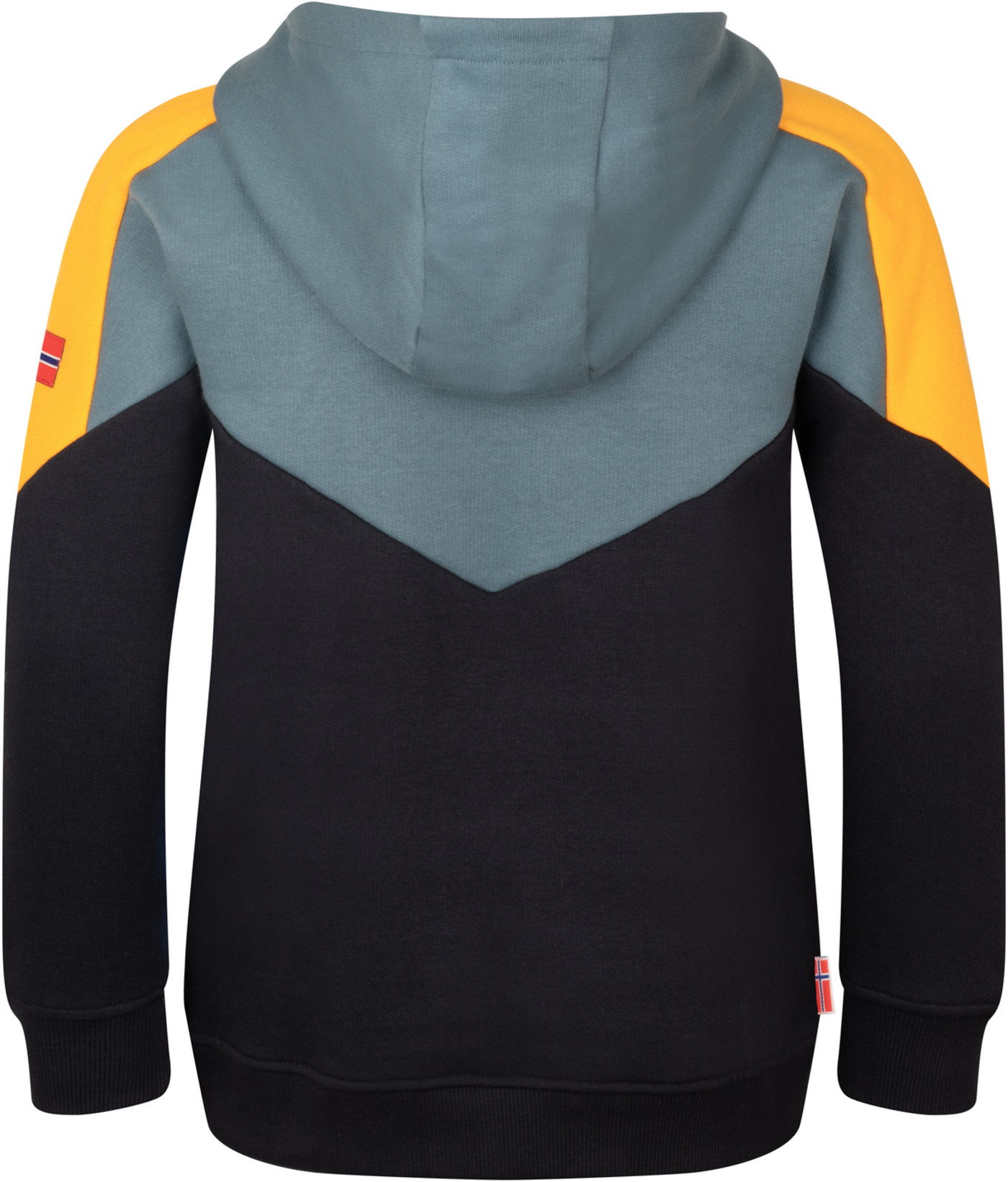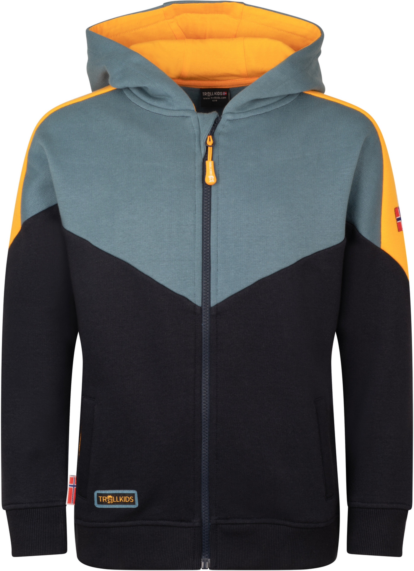 Trollkids Sweatjacke mit Kapuze aus 100% Baumwolle FLEKKEFJORD - Black/Steel Blue/Mango