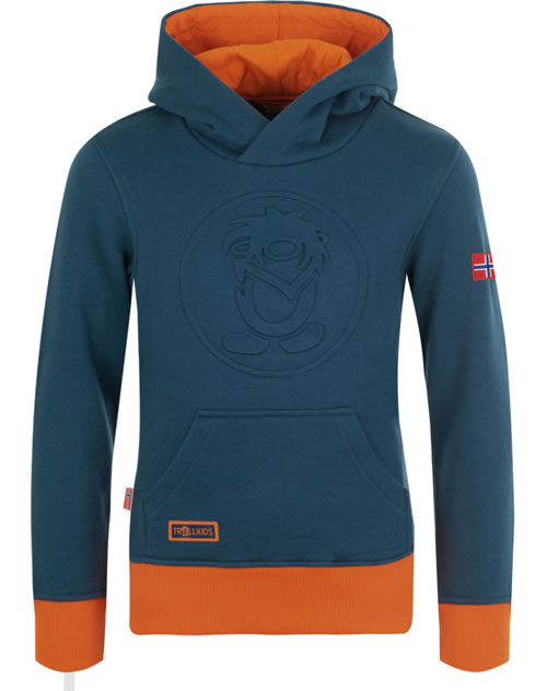Trollkids Sweatpullover Kapuze KIDS LILLEHAMMER SWEATER m. blue/orange