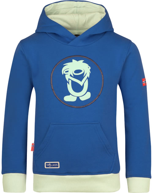 Ein toller Begleiter für jeden Tag: bequemer Kapuzenpulli Troll mit TROLLKIDS-Logoaufdruck auf der Vorderseite. Bündchen und