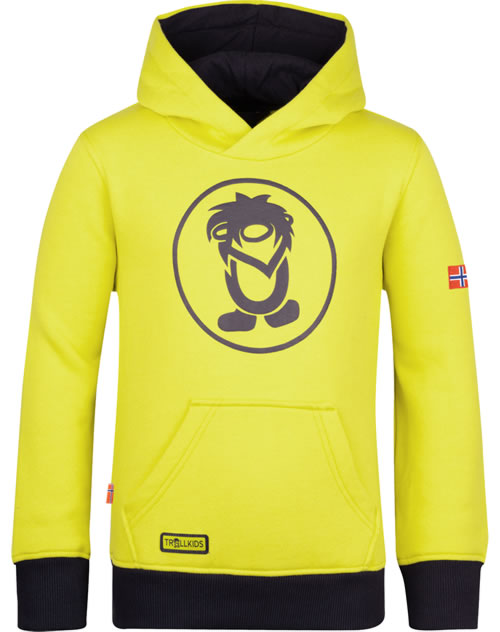 Ein toller Begleiter für jeden Tag: bequemer Kapuzenpulli Troll mit TROLLKIDS-Logoaufdruck auf der Vorderseite. Bündchen und
