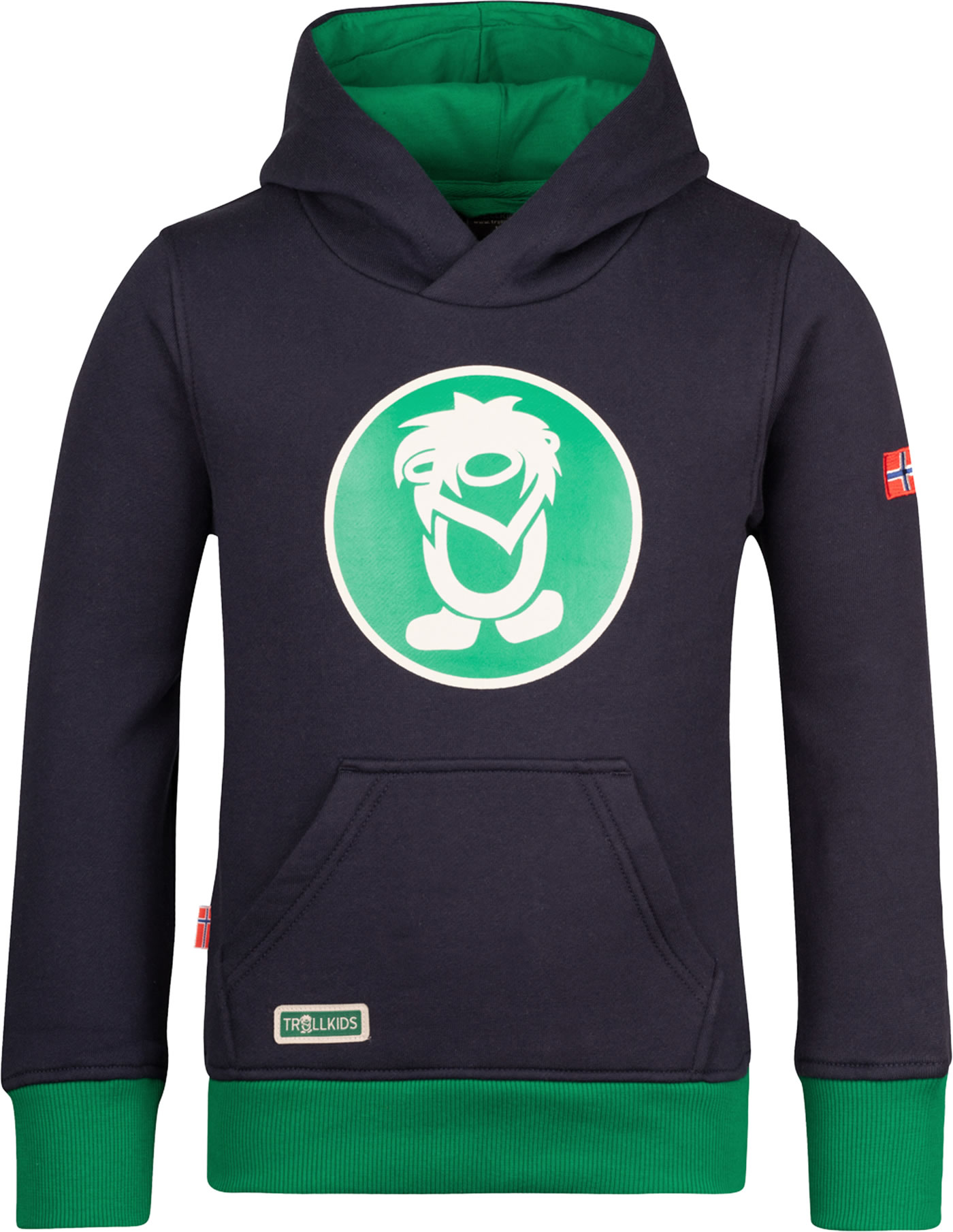 Ein toller Begleiter für jeden Tag: bequemer Kapuzenpulli Troll mit TROLLKIDS-Logoaufdruck auf der Vorderseite. Bündchen und