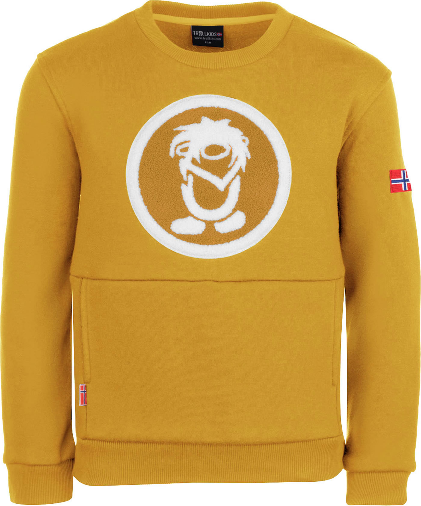 Gemütliches Sweatshirt KIDS TROLLTUNGA von TROLLKIDS mit Troll-Applikation auf der Vorderseite. das Sweatshirt hat eine große Bauchtausche und ist innen weich angeraut.