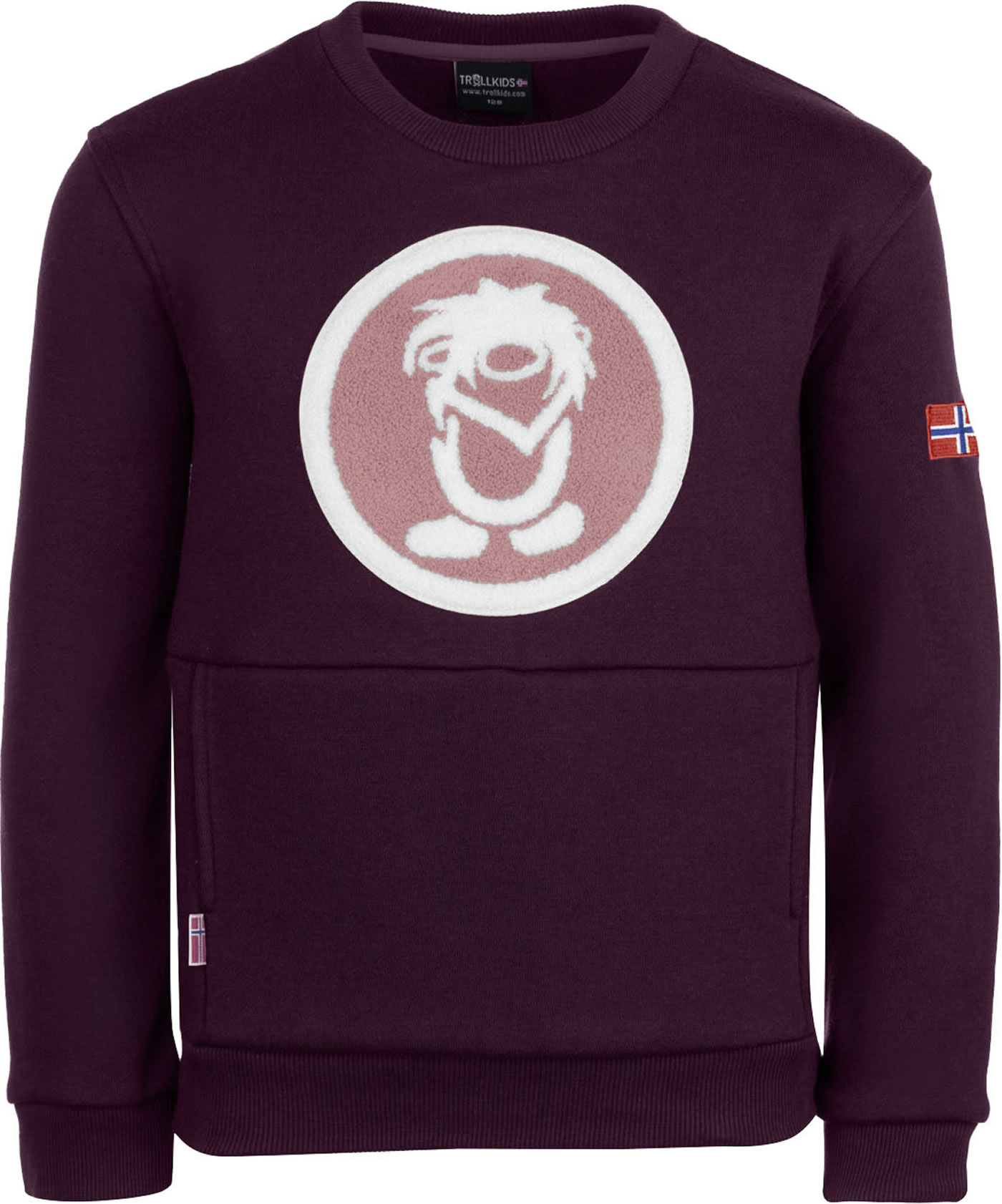 Gemütliches Sweatshirt KIDS TROLLTUNGA von TROLLKIDS mit Troll-Applikation auf der Vorderseite. das Sweatshirt hat eine große Bauchtausche und ist innen weich angeraut.
