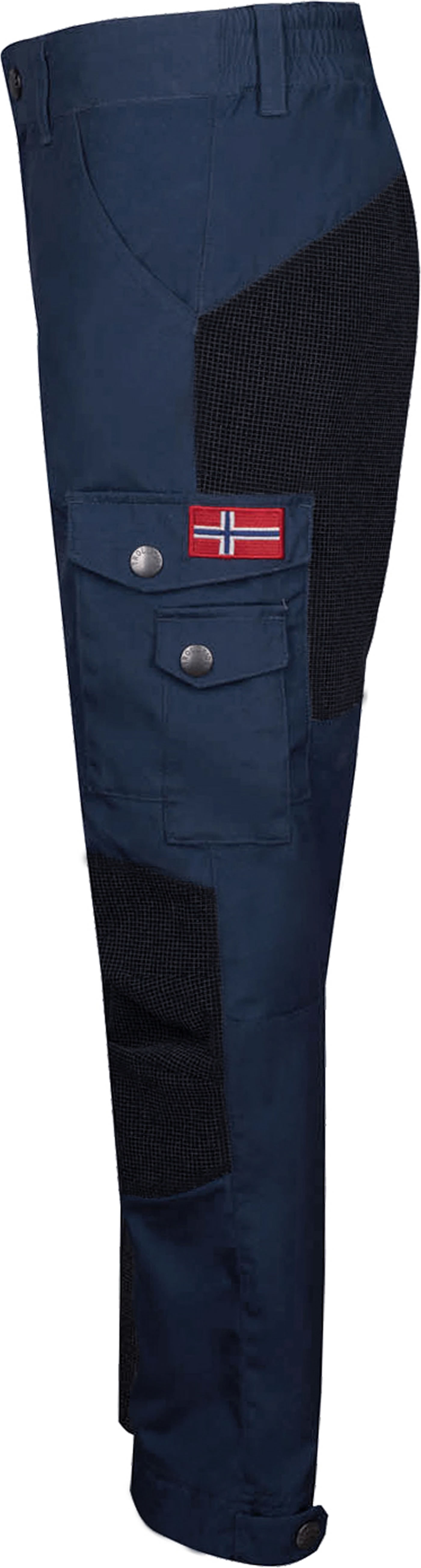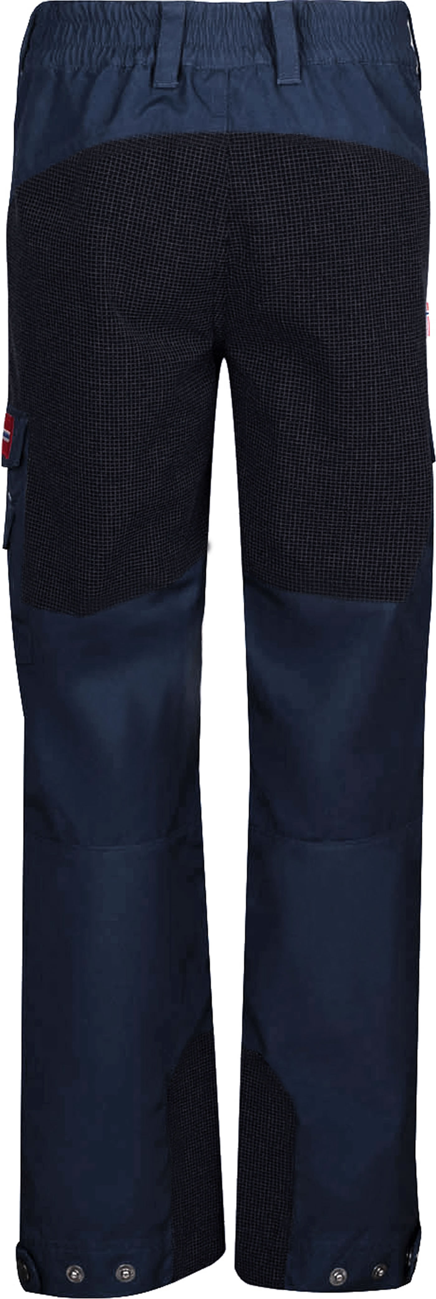 Besonderer Clou: die dreifstufig per Druckknopf verstellbaren Beinabschlüsse, die sicher dafür sorgen, dass von unten kein Schmutz in die Hose dringen kann.