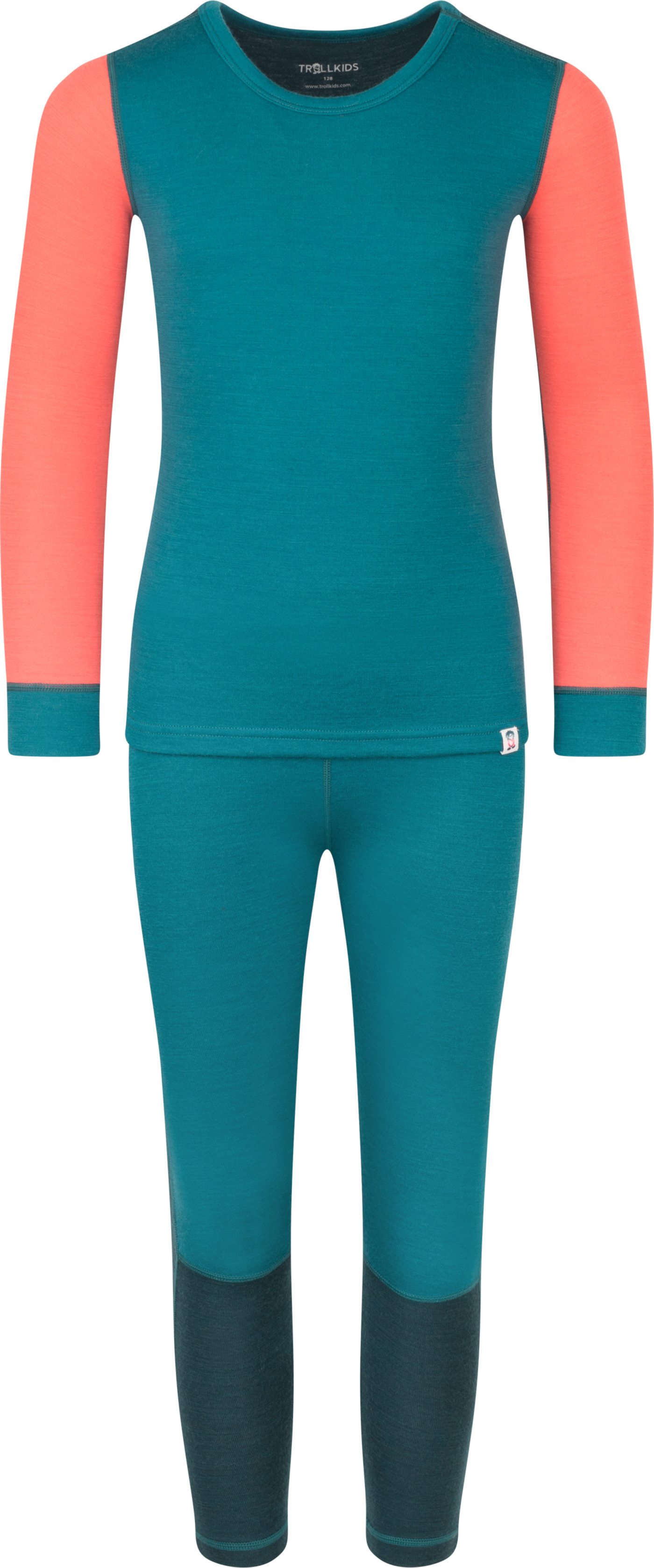 Trollkids Unterwäsche-Set II KIDS MERINO BASELAYER SET II - Ocean Green/Midnight Petrol/Coral Pink