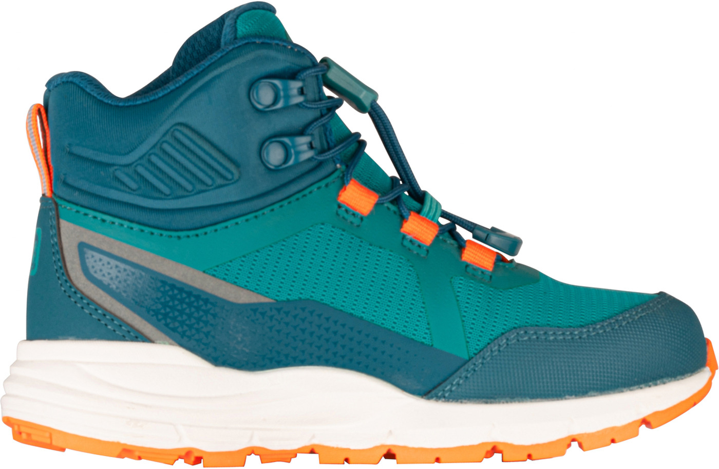 Ideal für lange Wandertouren, ausgedehnte Spaziergänge oder einfach zum Spielen und Toben: Der KIDS SKARVAN HIKER MID XT ist ein sportlicher, knöchelhoher Wanderschuh, der dank der AQUAPROOF-Membran wasserdicht und damit auch bei Regen in seinem Element ist. Der knöchelhohe Schaft mit der klassischen Wanderschuh-Schnürung gewährleistet eine ideale Anpassung an den Fuß und die nötige Stabilität auch in unwegsamem Gelände. Die Zehenkappe und die leistenförmige 360-Grad PU-Verstärkung bieten dem Fuß guten Halt und machen den Schuh noch robuster. Die besonders hochwertige, griffige Vibram-Sohle sorgt für sicheren Halt und hohen Laufkomfort. Reflektierende Elemente verbessern die Sichtbarkeit.