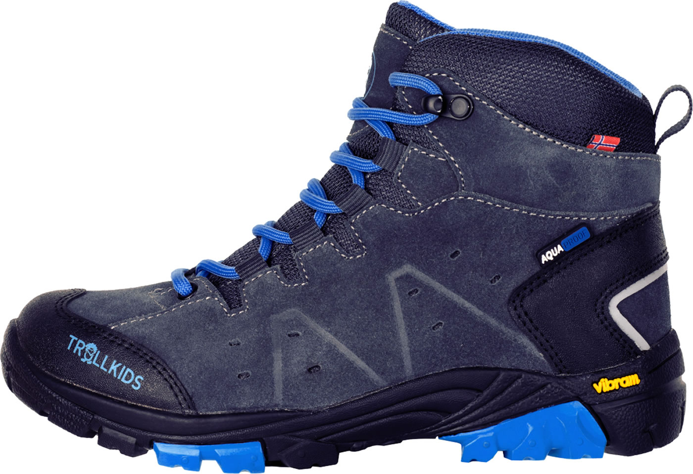 Der KIDS TROLLSTEINEN HIKER MID von TROLLKIDS ist ein knöchelhoher, robuster und wasserdichter Wanderschuh mit Schnürung, der beim Spielen, Toben oder Wandern in seinem Element ist. Verstärkungen im Fersen- und Zehenbereich sorgen für Stabilität und schützen den Fuß. Die profilierte Vibram-Sohle sorgt für den nötigen Grip und reflektierende Elemente für eine gute Sichtbarkeit.