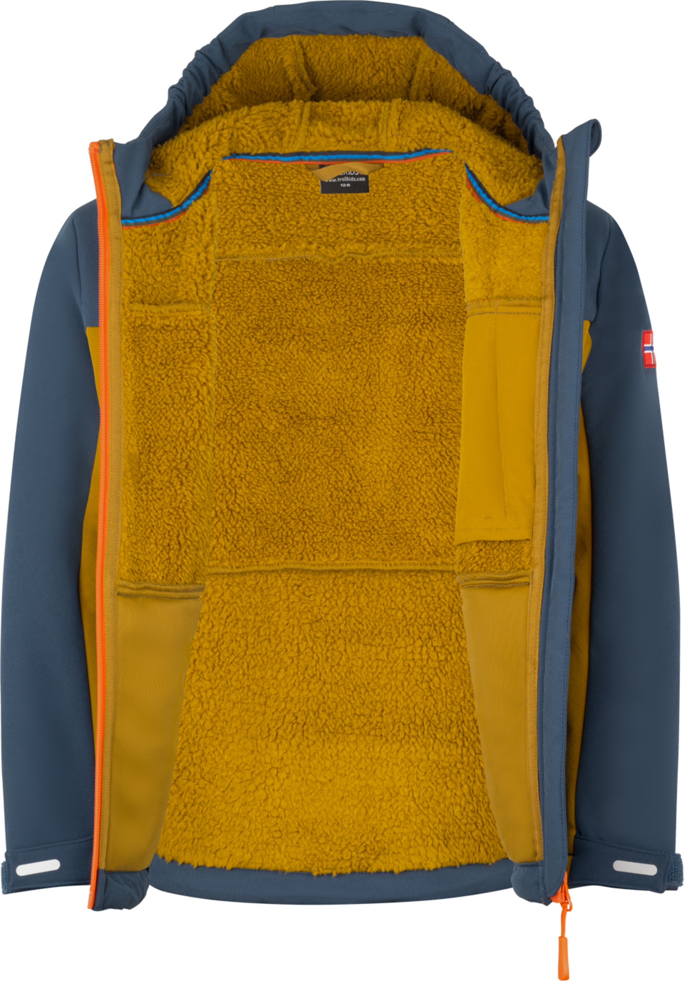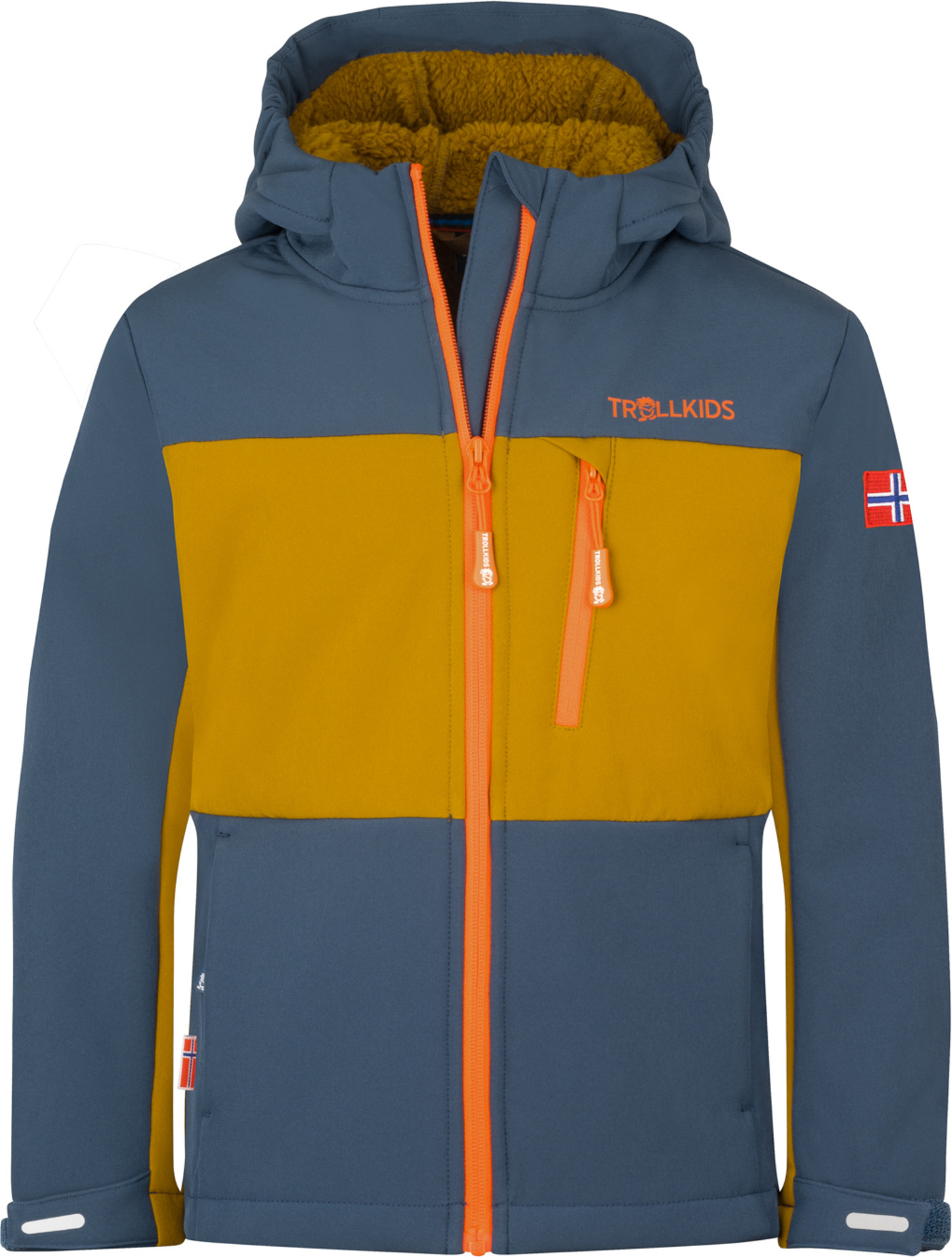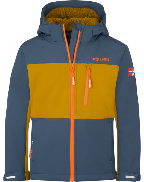 Trollkids Winter-Softshelljacket mit Kapuze BERGSFJORD - Bronze/Mystic Blue/Flame Orange
