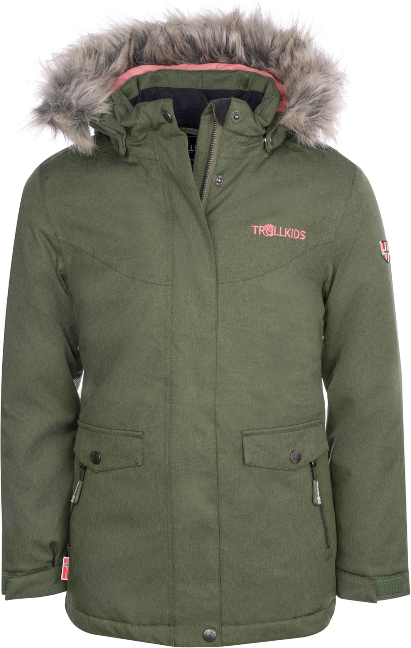 Trollkids Winterjacke/Mantel mit Kunstfellkapuze GIRLS OSLO COAT XT Dusky Olive/Antique Rose