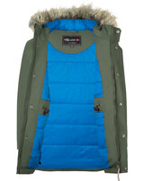 Die Kapuze mit abnehmbarem Fellimitat lässt sich individuell einstellen.