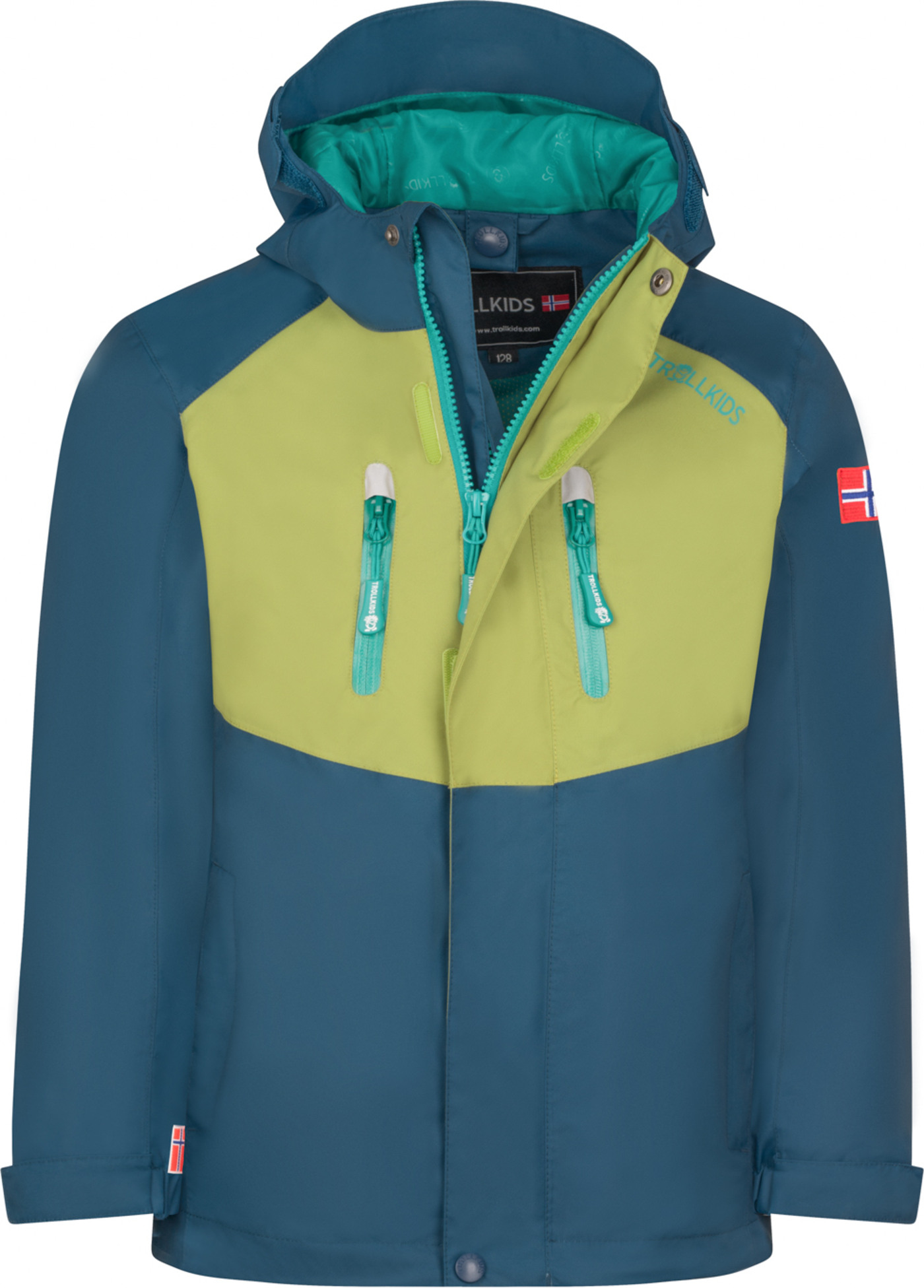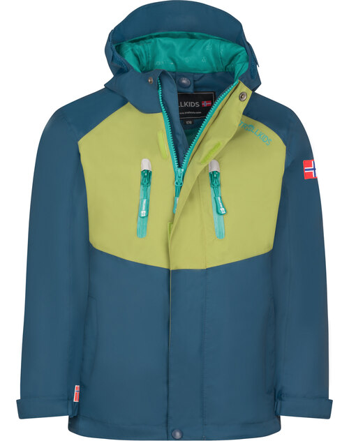 Trollkids Zip-In-Wetterschutzjacke KIDS NUSFJORD - Madeira Blue/Pear Green/Sea Green