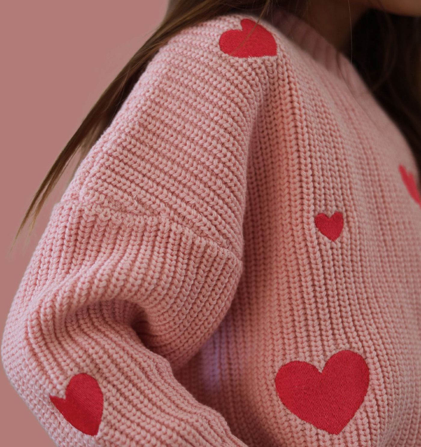 Vacvac Studio Strick-Pullover 'Belle' mit Herz-Stickereien 💖 - Poppy Rose