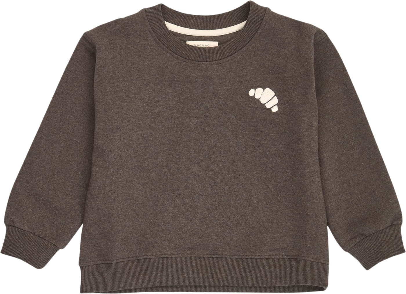 Der Pullover ist locker geschnitten und hat an der Brust eine Croissant-Stickerei- das typische Markenzeichen für Vacvac 🥐