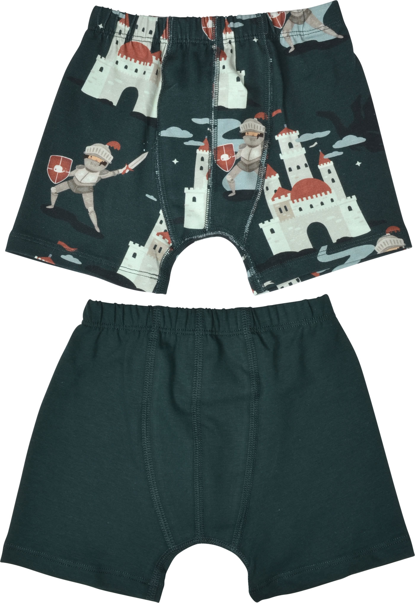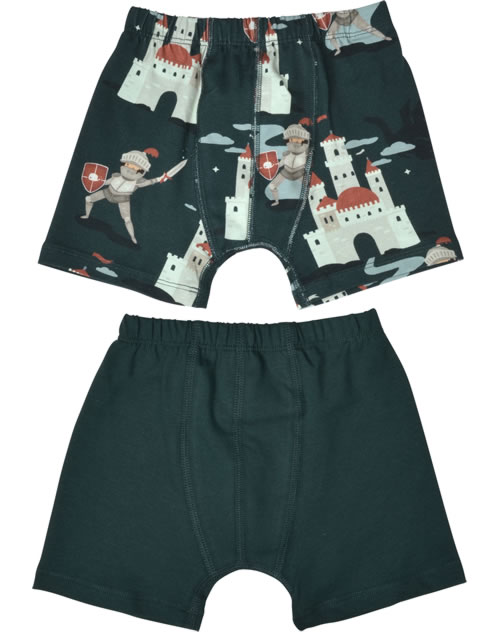 Set mit zwei tollen Boxer-Shorts in dunkelgrün und mit Rittern und Burgen von WALKIDDY für Jungen. Das weiche und elastische Bündchen sorgt für einen guten Sitz und das weiche Material aus ökologischer Baumwolle ermöglicht einen hohen Tragekomfort.