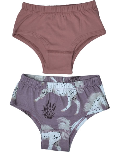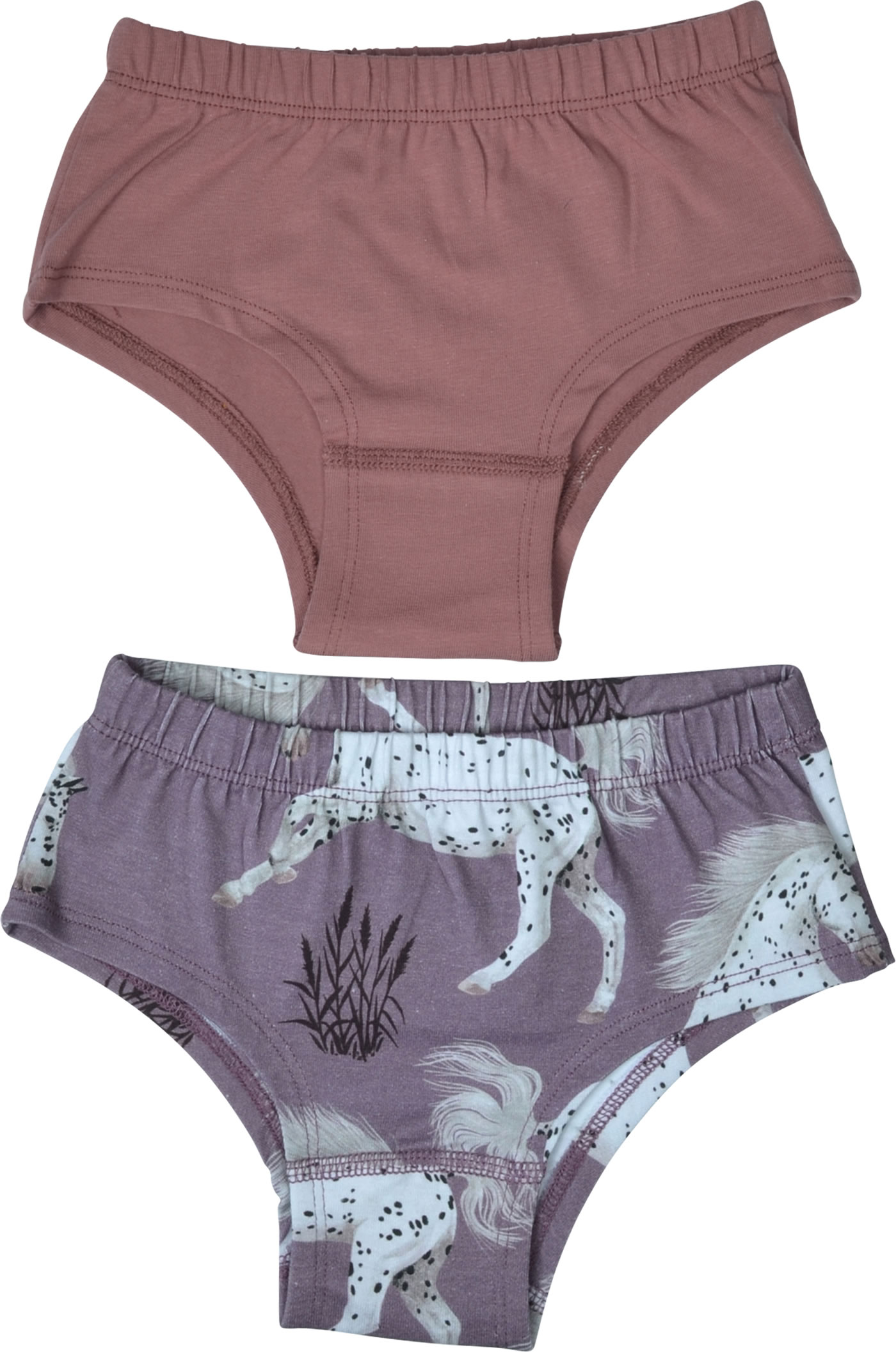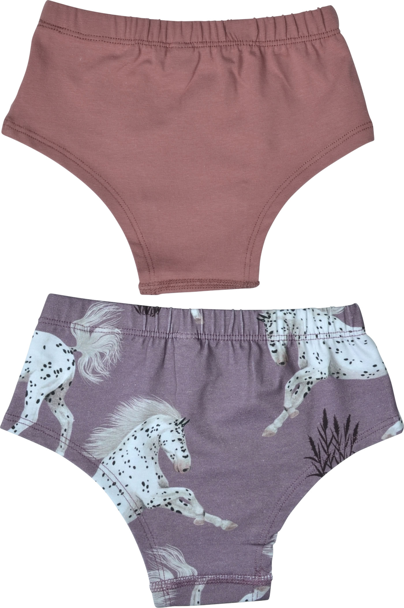 Set mit zwei Unterhosen in lila und altrosa und mit Pferde-Motiven von WALKIDDY für Mädchen. Das weiche und elastische Bündchen sorgt für einen guten Sitz und das weiche Material aus ökologischer Baumwolle ermöglicht einen hohen Tragekomfort.
