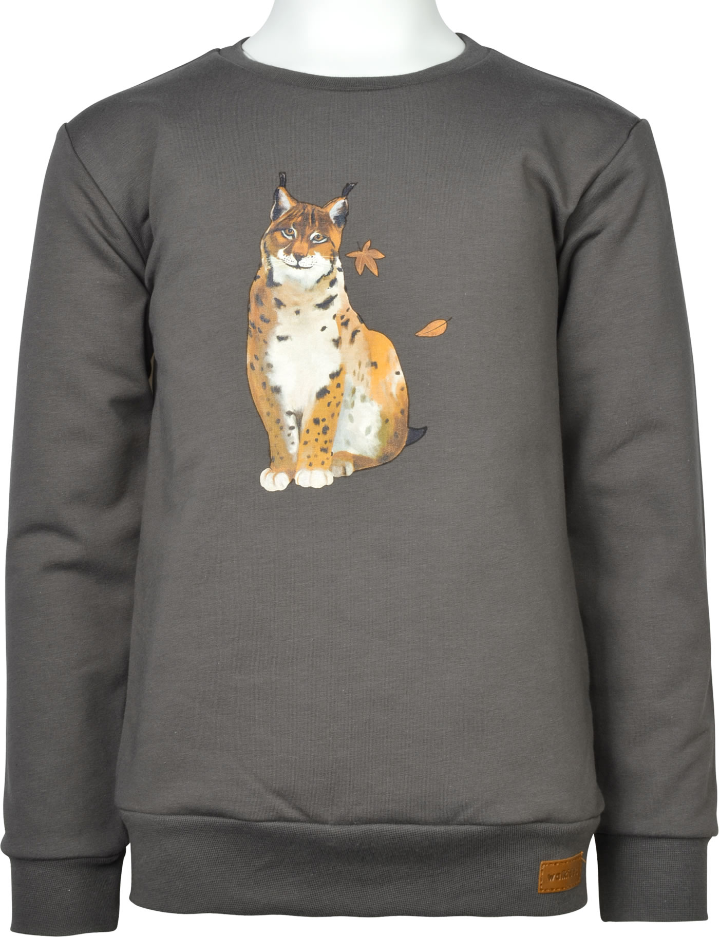 Warmes Sweatshirt mit angerauter Innenseite von WALKIDDY. Der Print mit dem schönen Luchs ist der absolute Blickfang. Das Material aus biologischer Baumwolle und der lockere Schnitt sorgen für einen hohen Tragekomfort.