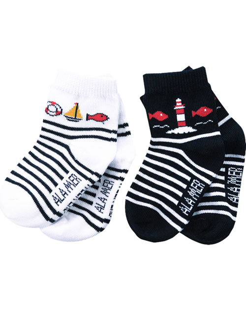 Weekend à la mer Baby-Socken 2er Set ALAPOINTE weiß/navy B122.A6