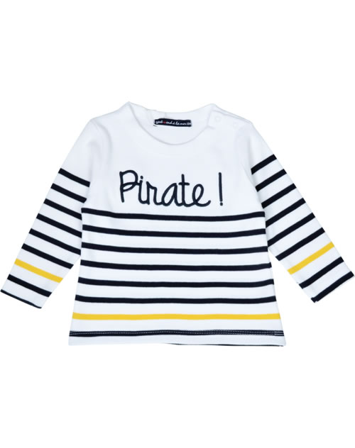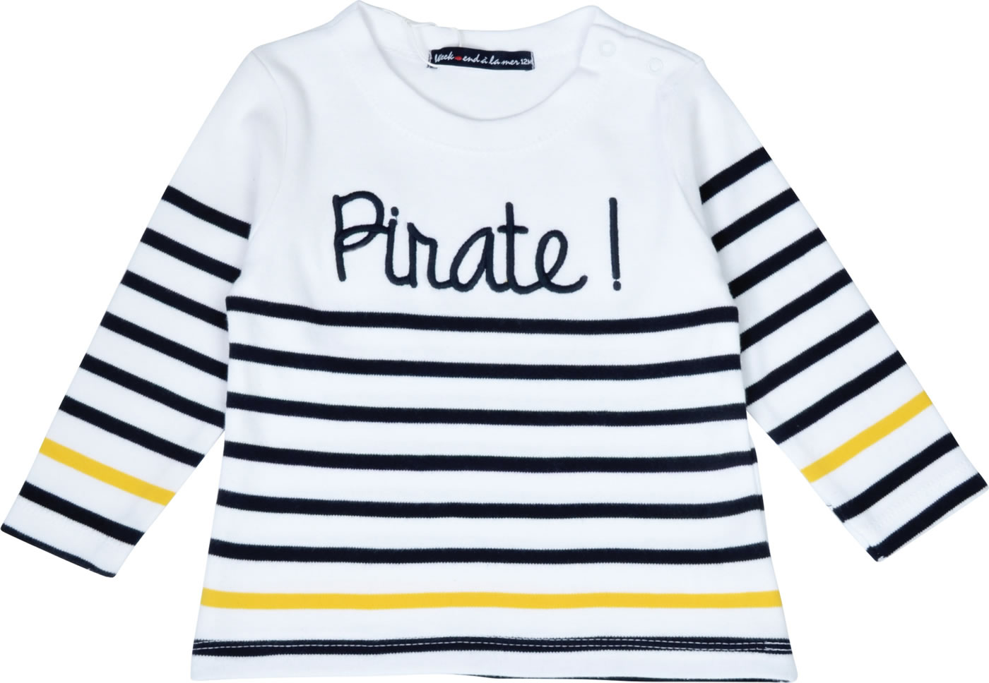 Ein gestreiftes Langarm-Shirt von WEEKEND A LA MER für Jungen. Der gestickte Schriftzug PIRATE! macht kleine Piraten stolz.