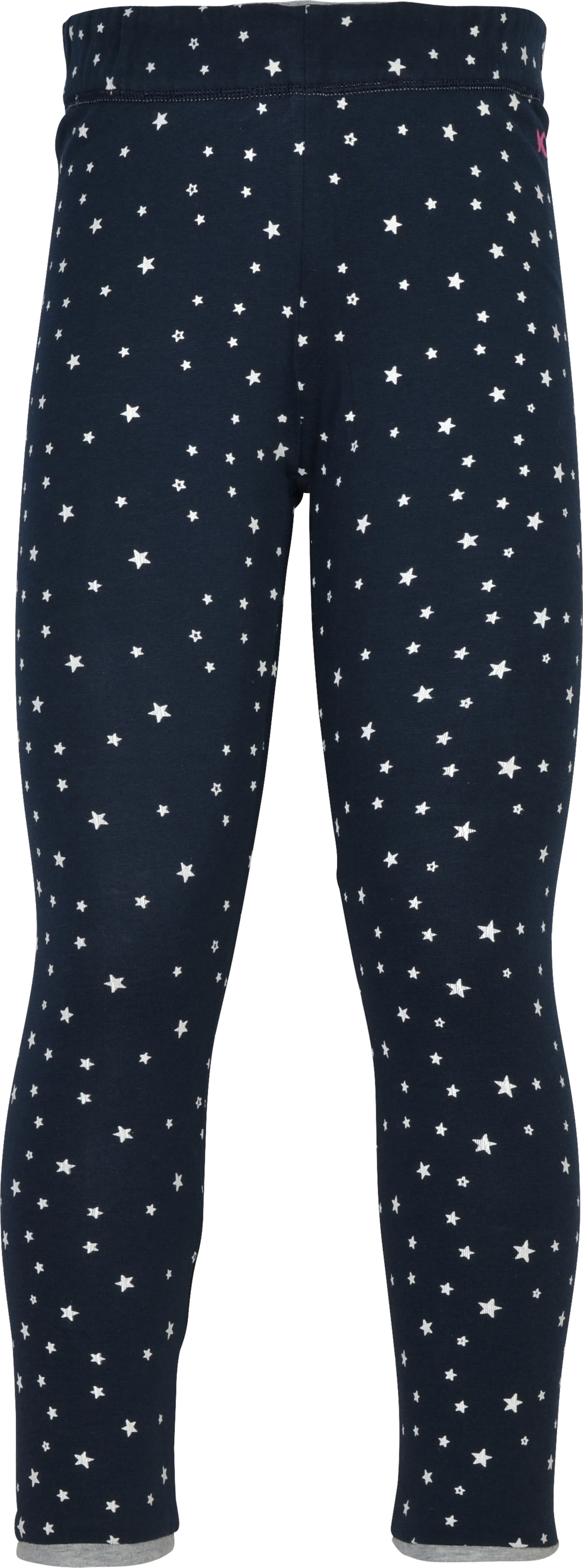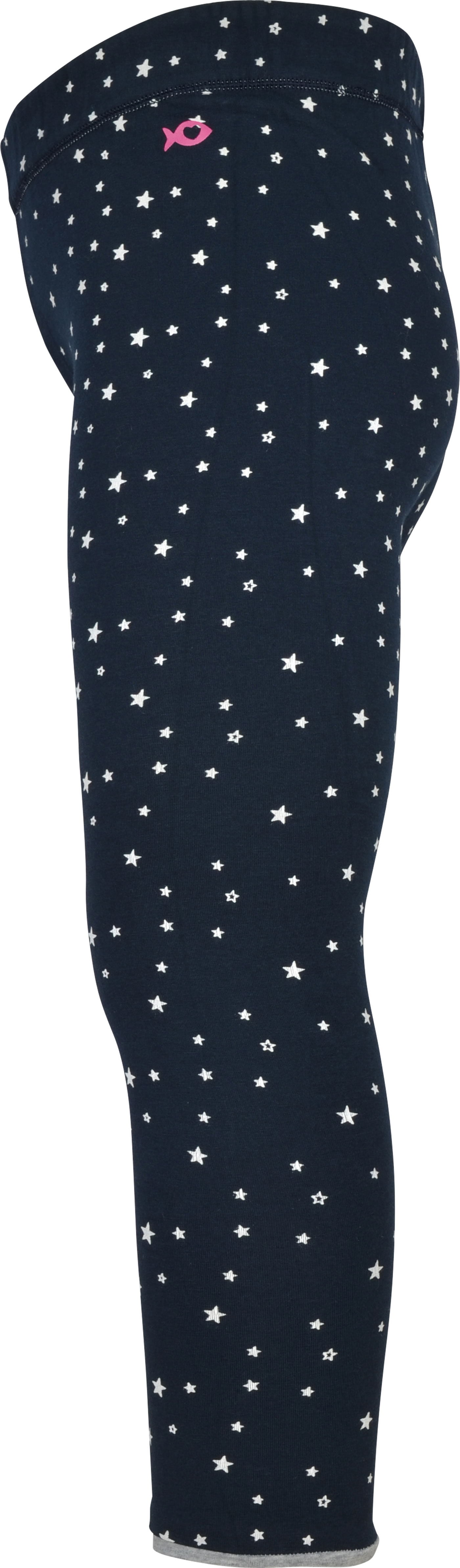 Leggings zum Wenden aus doppellagigem Jersey von WEEKEND A LA MER. Das Gummibündchen sorgt für einen perfekten Sitz. Am Beinabschluß zeigen die Umschläge das Muster der Wendefarbe. Die Leggings kann je nach Lust und Laune mit der unifarbenen oder der Seite mit Sternen getragen werden.
