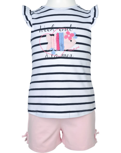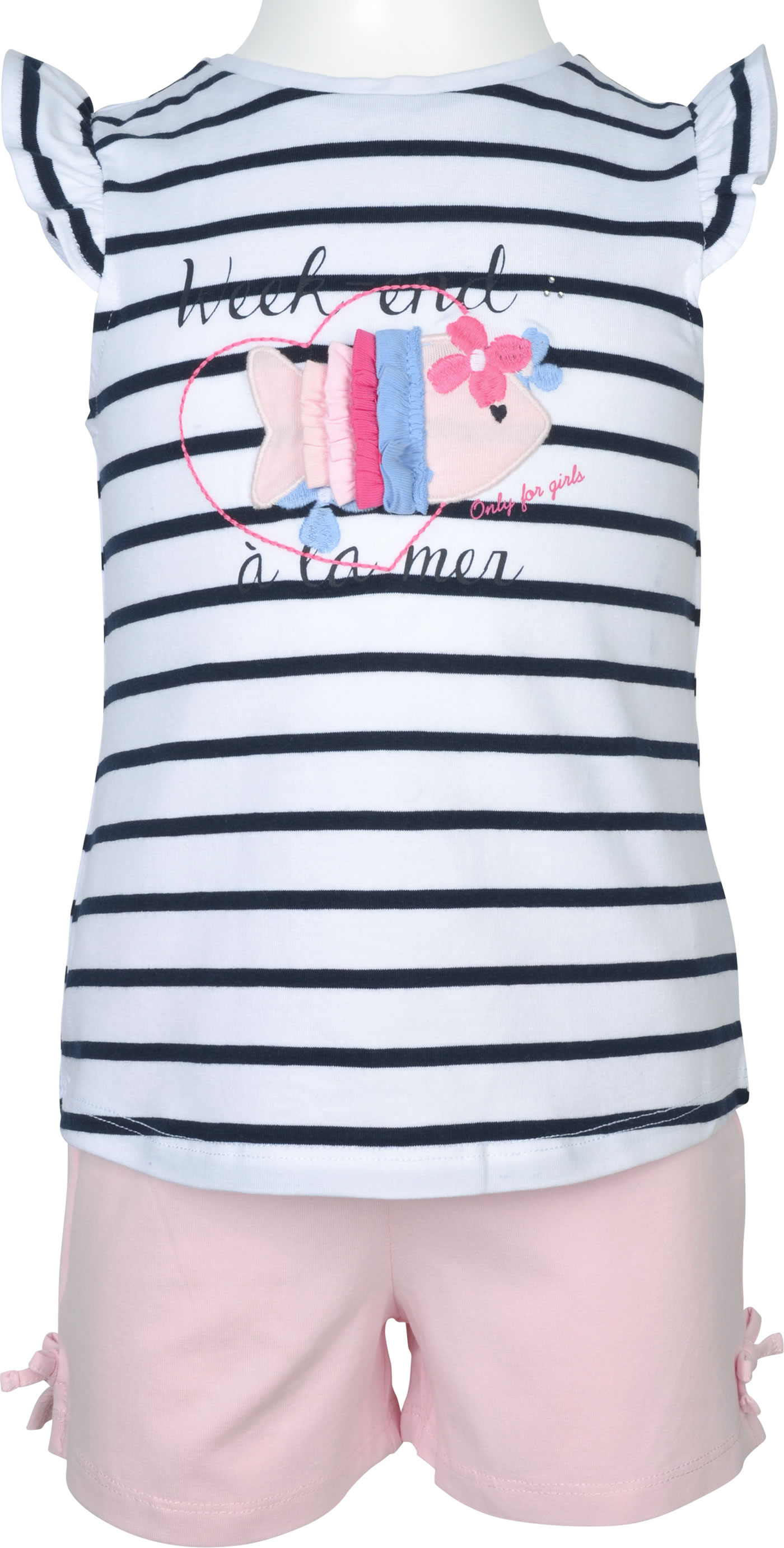 Ein Set mit Shirt und Shorts von WEEKEND A LA MER für Mädchen. Das Set ist aus weichem Jersey und im maritimen Look. Ein toller Hingucker ist die Applikation mit dem bunten Fisch auf der Vorderseite. Verschlossen wird das Shirt mit einer Druckknopfleiste. Die passende Shorts hat einen elastischen Bund und kleine Schleifen an den Beinen.