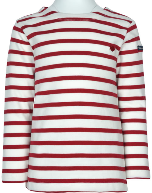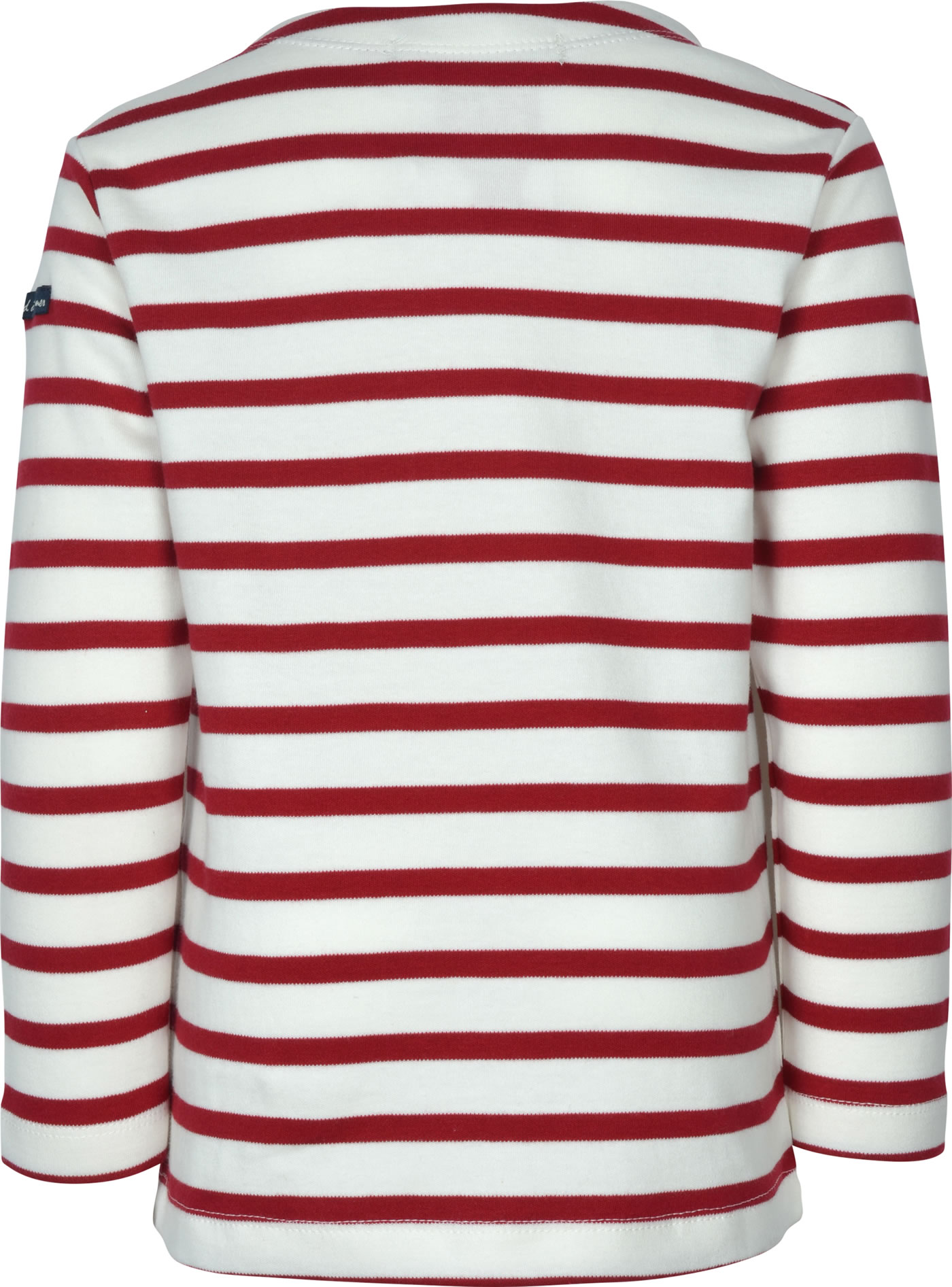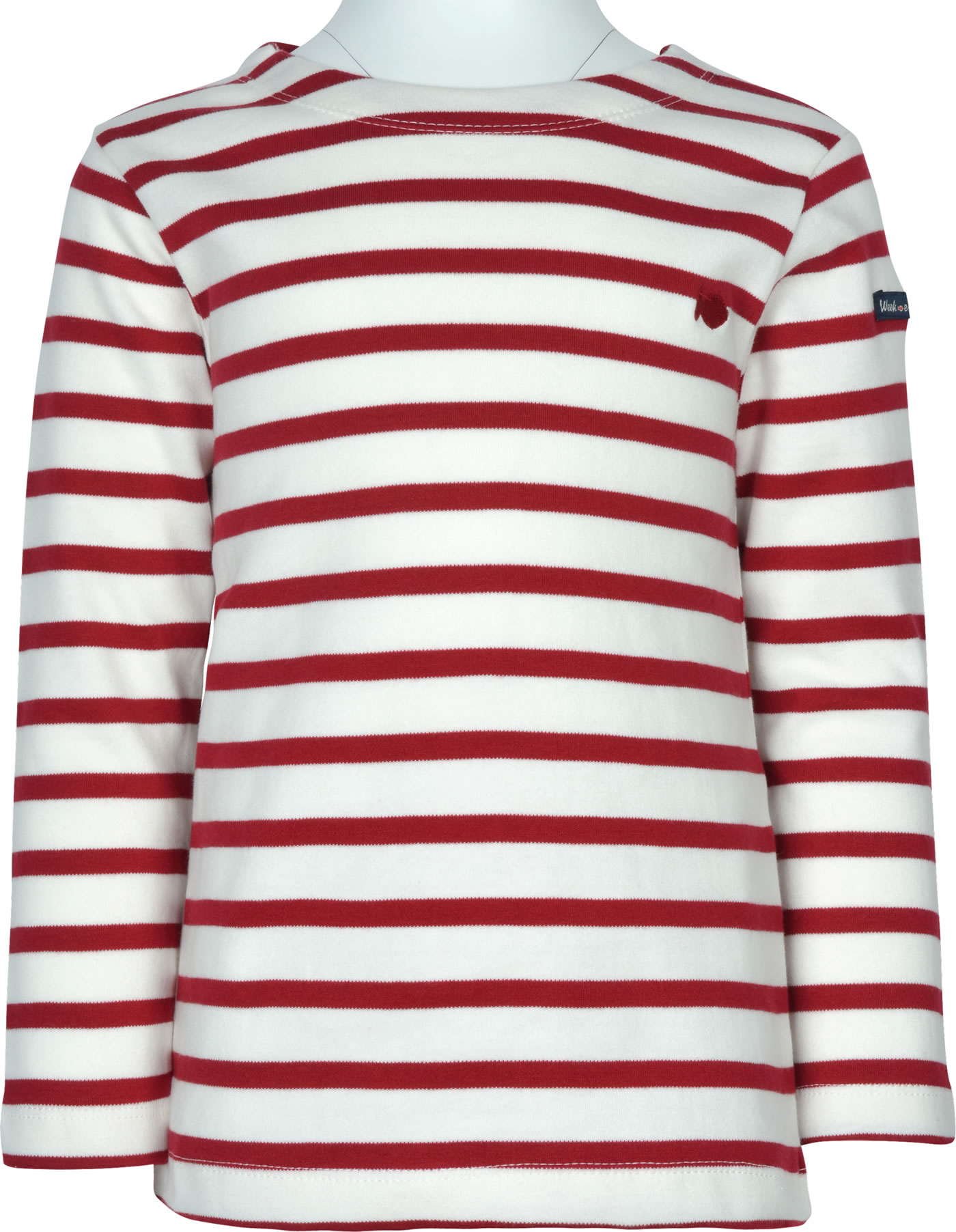 Das creme und rot gestreifte Langarm-Shirt von WEEKEND A LA MER ist aus weichem, etwas dickerem Jersey. Besonders schön ist die kleine Fisch-Applikation auf der Vorderseite.