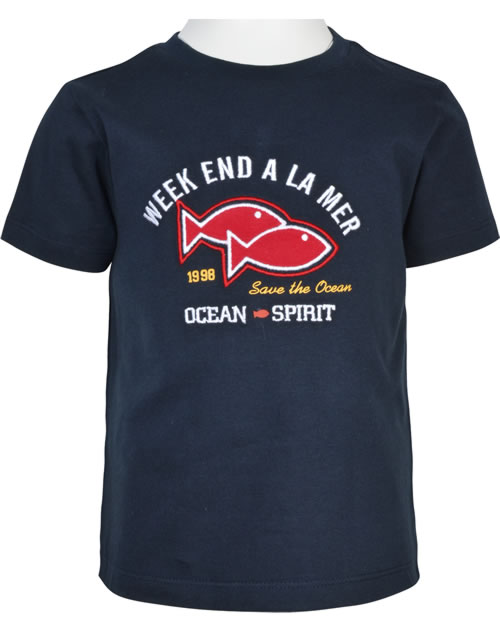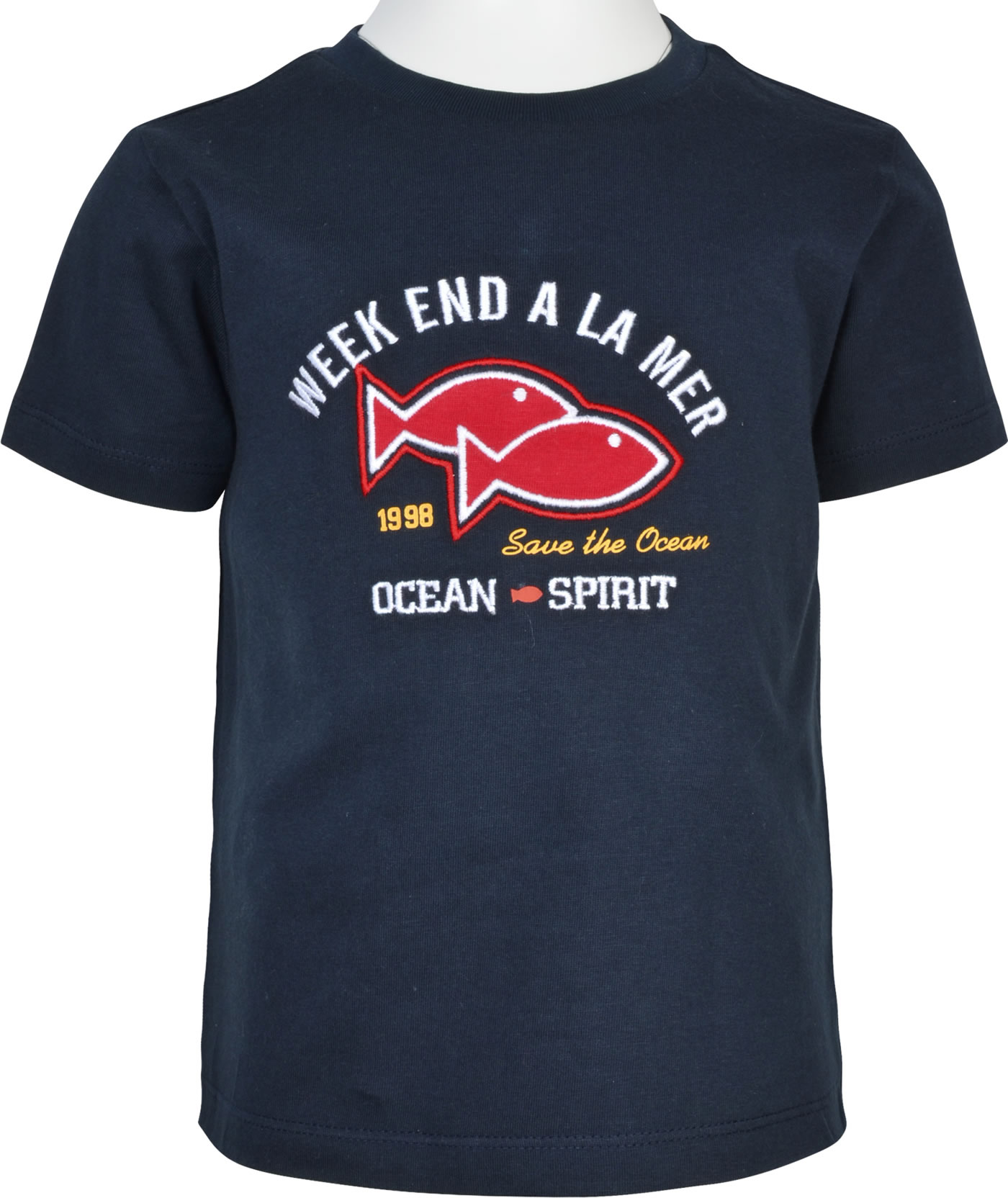 Dunkelblaues Kurzarm-Shirt von WEEKEND A LA MER für Jungen. Das Shirt aus weichem Jersey hat eine tolle maritime Applikation auf der Vorderseite.