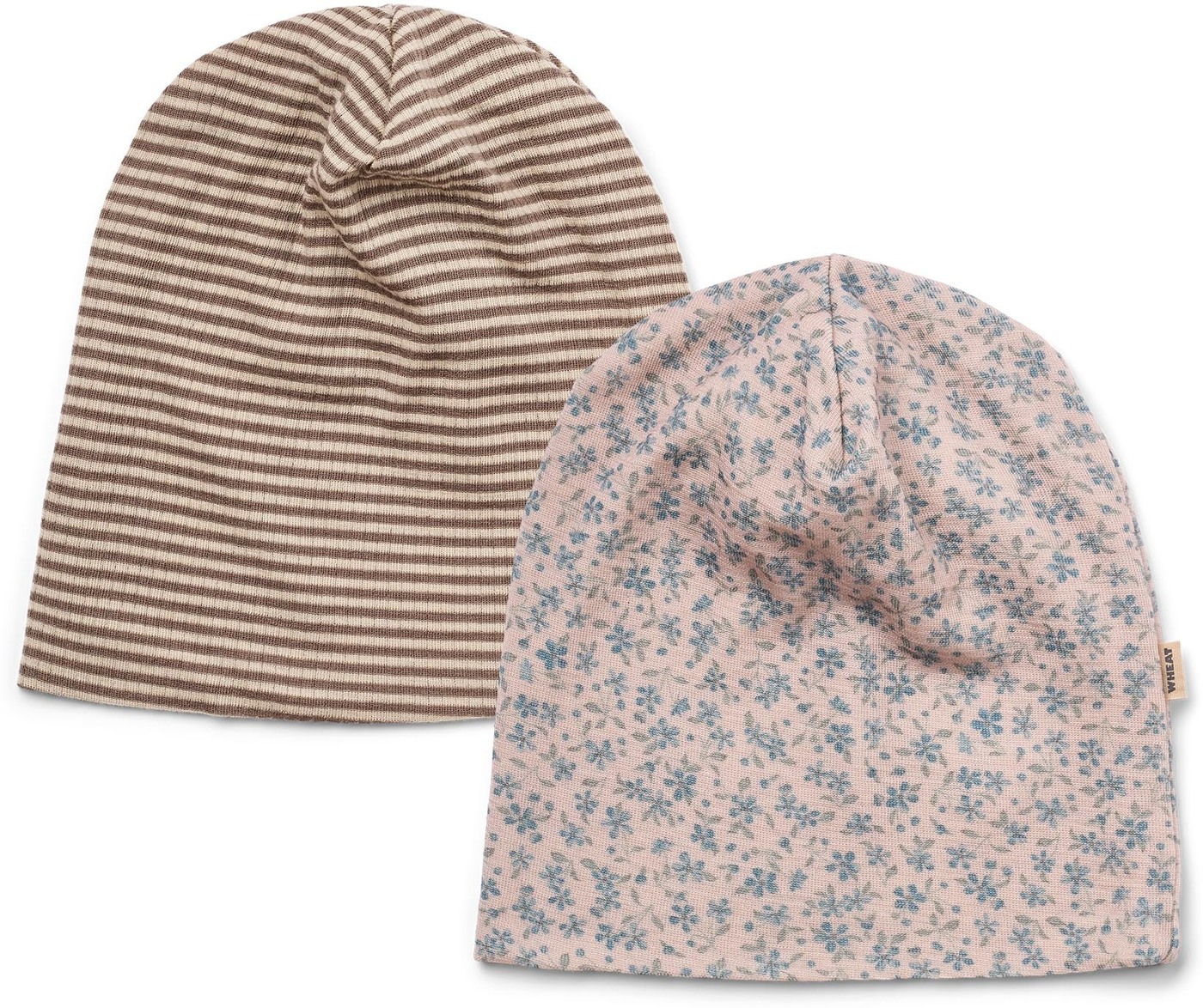 Wheat 2-Pack-Beanies 'Emo' aus 100 % Merinowolle - Blue Flowers