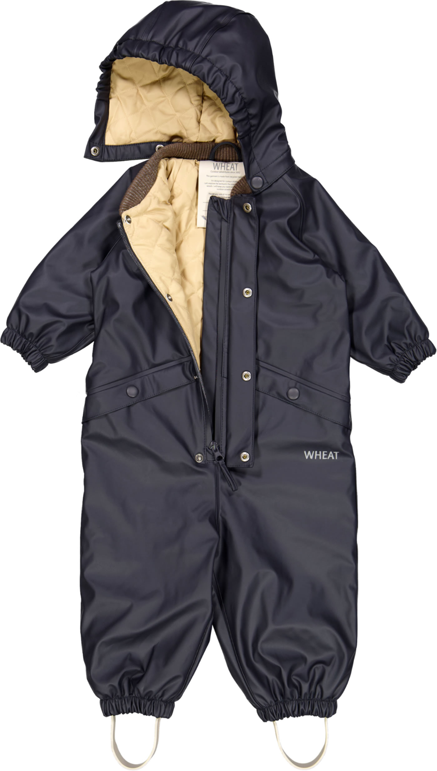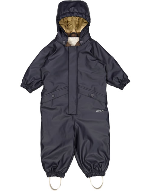 Der leicht gefütterte Regenanzug AIKO von WHEAT ist ein toller Begleiter für die nasse Jahreszeit. Ob im Herbst mit einer Leggings und Shirt getragen oder an kälteren Tagen mit wärmerer Kleidung drunter: AIKO ist ein prima Allrounder, gerade für die Übergangszeit. Das Material ist wasserdicht und atmungsaktiv und hält somit dem feuchten Herbstwetter stand. Ärmel- und Beinenden haben ein bequemes Gummibündchen, Gummistege an den Beinenden sorgen dafür dass alles da bleibt, wo es hingehört und sorgen außerdem für eine bessere Rutschhemmung unter dem Schuhwerk. Außerdem sind elastische Hosenträger eingenäht, so dass dein Kind den Anzug auch mit ausgezogenem Oberteil tragen kann, wenn es ihm zu warm wird oder es sich im Haus aufhält. Am Rücken ist ein flexibler Gummi-Steg eingearbeitet der eine gute Passform ermöglicht. Durch die reflektierenden Details ist der Träger in der dunklen Jahreszeit gut zu erkennen. Das Material besteht aus 100 % recyceltem Polyester mit atmungsaktiver Polyurethan-Beschichtung und das leichte Gewicht sorgt für ein angenehmes Bewegungs- und Spielgefühl. In den Einstecktaschen mit Druckknopf lassen sich kleine Schätze verstauen.