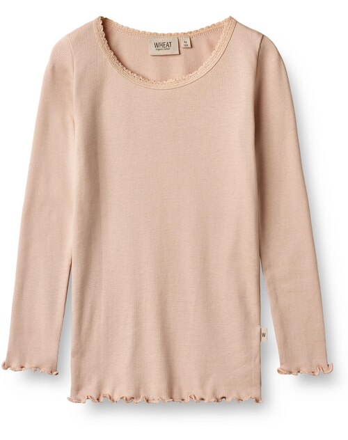 Wheat Mädchen Rib T-Shirt Langarm Resee aus Baumwolle/Modal - Rose Dust