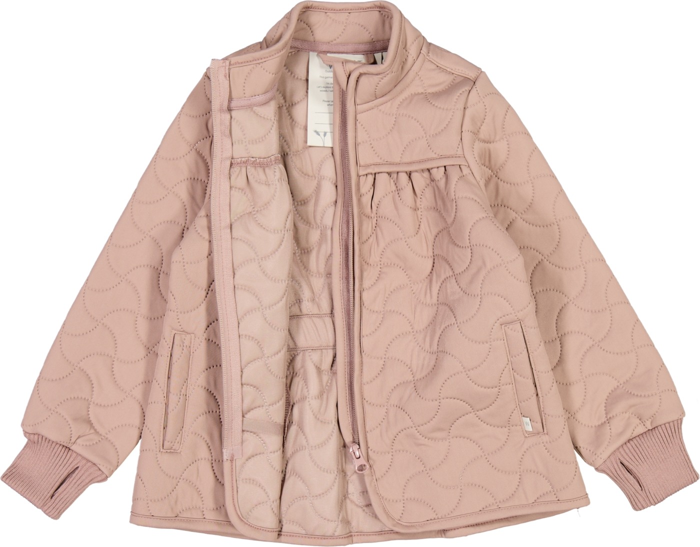 Durch die reflektierenden Details ist der Träger in der dunklen Jahreszeit gut zu erkennen. In den offenen, paspelierten Seitentaschen lassen sich kleine Schätze verstauen. Das mädchenhafte Design, der Schnitt in A-Linie und die verspielte Steppung sorgen für einen Blickfang. Das Material besteht aus 100 % recyceltem Polyester und das leichte Gewicht sorgt für ein angenehmes Bewegungs- und Spielgefühl.