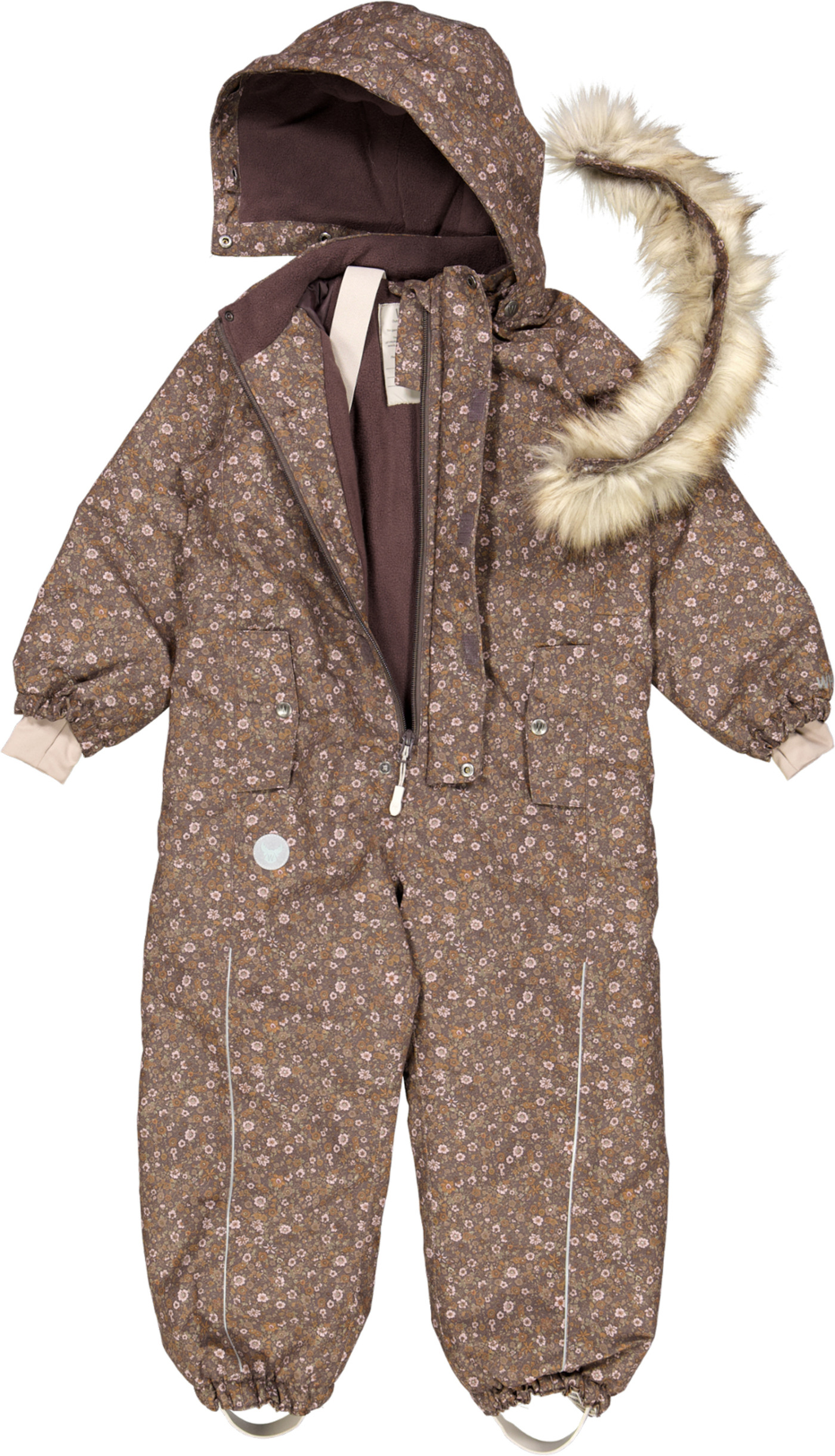 Reißverschluss mit zusätzlicher Druckknopfleiste sorgt für ein einfaches An- und Ausziehen. Im Rumpfbereich sowie auch in der abnehmbaren Kapuze ist der Overall mit einem weichen Fleecematerial versehen. So hält er den Nachwuchs im Winter schön warm. Das Fell-Imitat an der Kapuze lässt sich durch Knöpfe abnehmen. Abnehmbare Gummistege in den Beinenden des Schneeanzugs verhindern ein Hochrutschen der Hosenbeine und sind zudem noch rutschhemmend unter dem Schuhwerk.