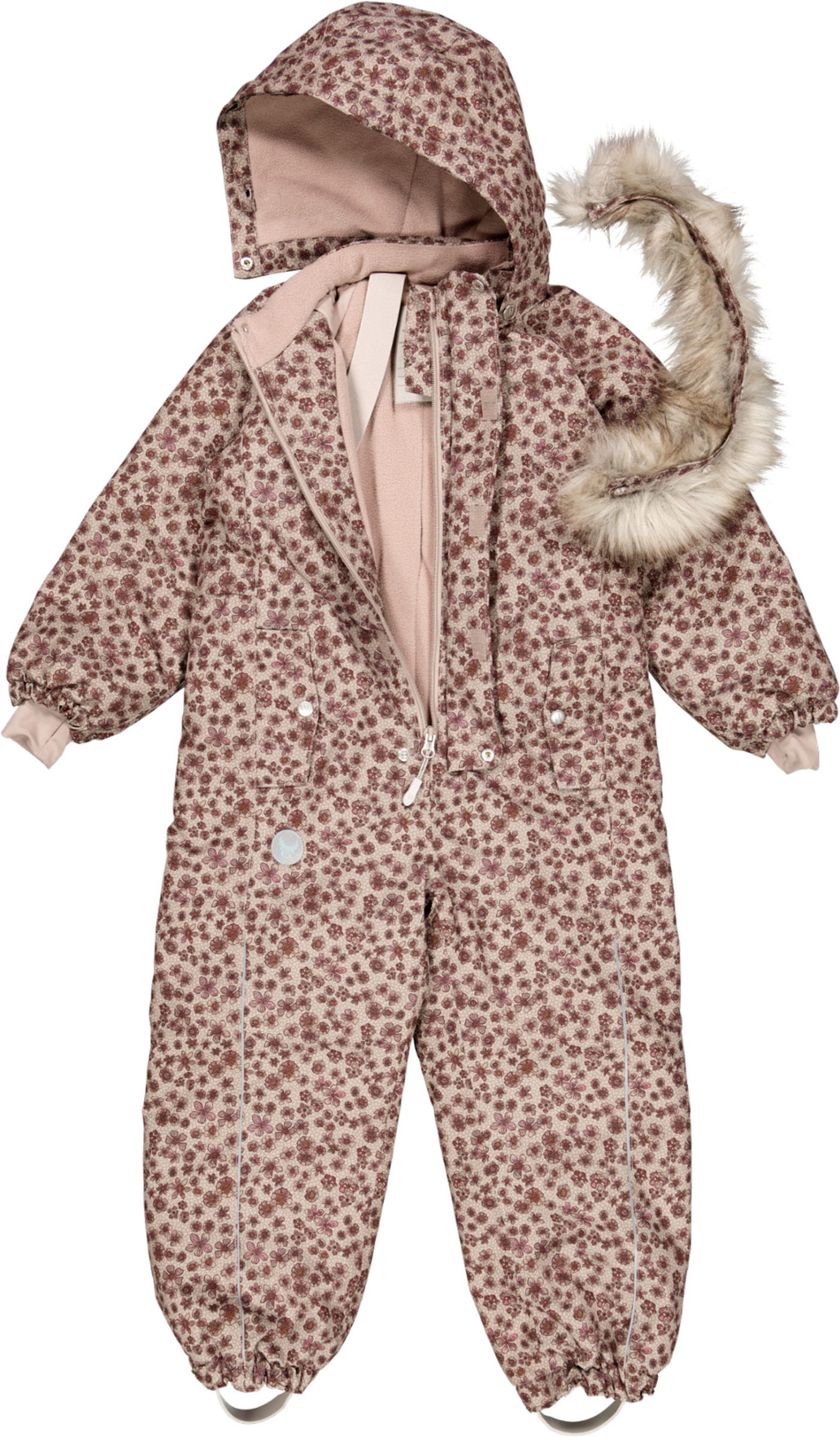 Wind- und wasserdicht ist der verspielte Schneeanzug mit der abnehmbaren und verstellbaren Fell-Kapuze. Softbündchen an den Ärmelenden sorgen mit einem Daumenloch dafür, dass alles da bleibt wo es hingehört.