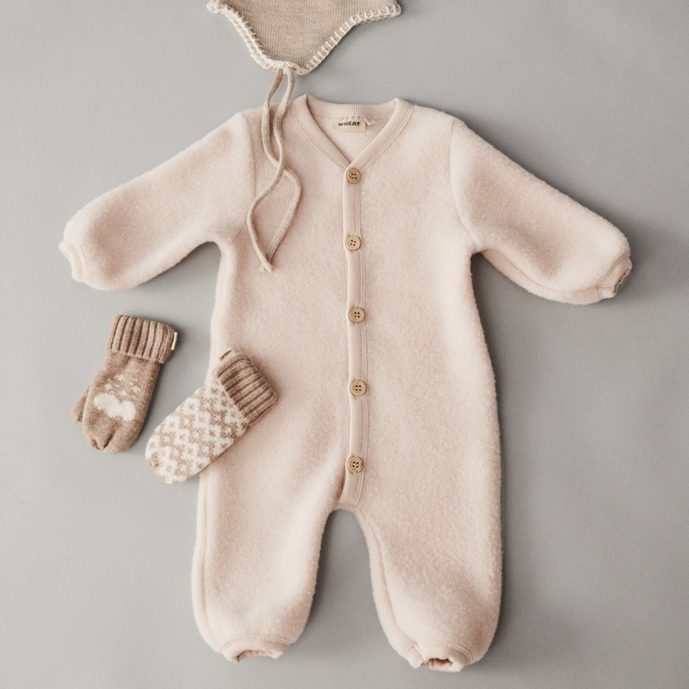 Mit diesem Overall aus 100 % weichstem Merinowoll-Fleece sind Babys kuschelig und warm eingepackt ❄️