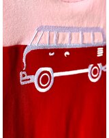 Ein toller Blickfang ist der aufgestickte VW-Bus auf der Vorderseite.