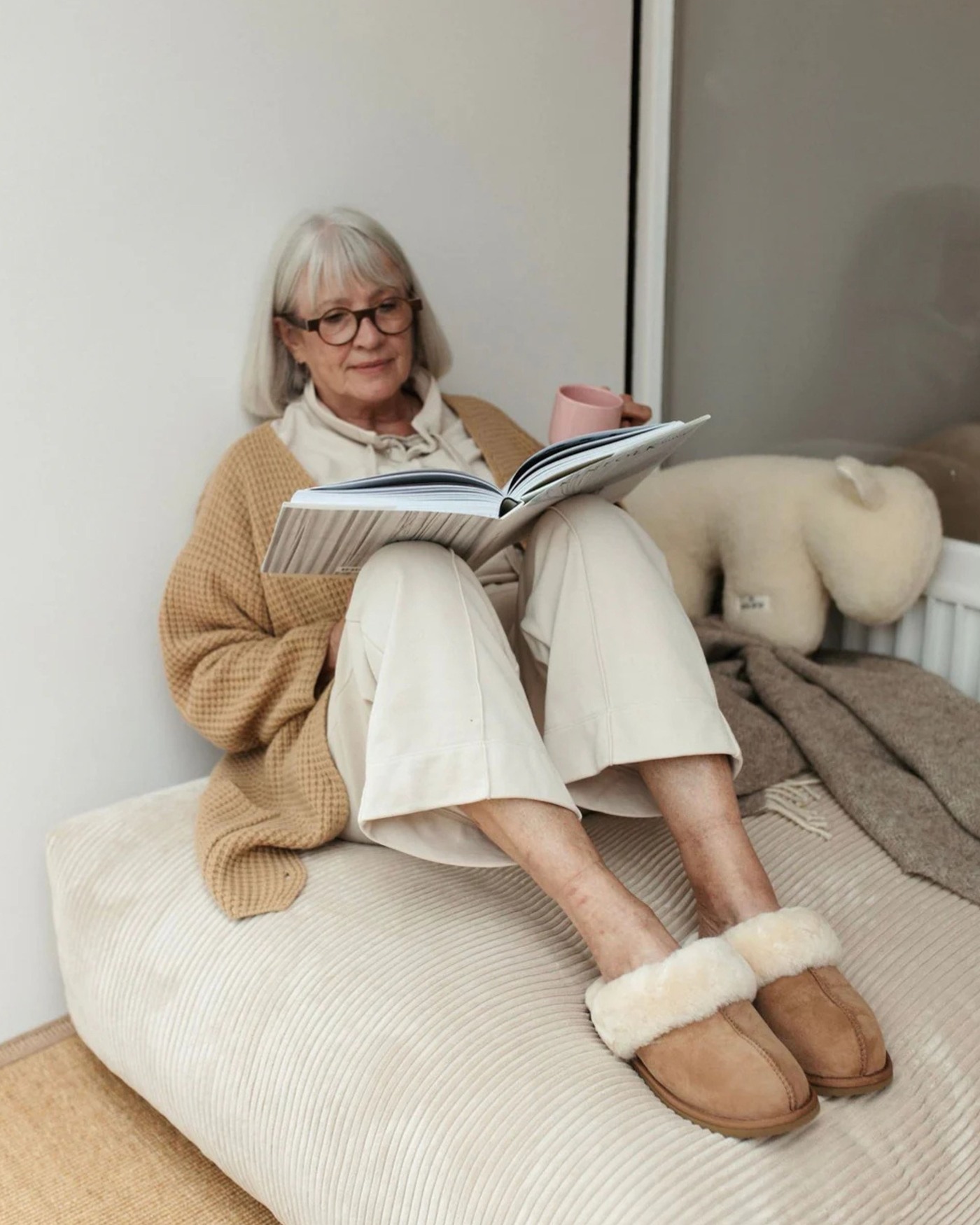 Der stilvolle Lammfell-Pantoffel 'Nuna' wird zum liebsten Begleiter für dein Zuhause. 🥰