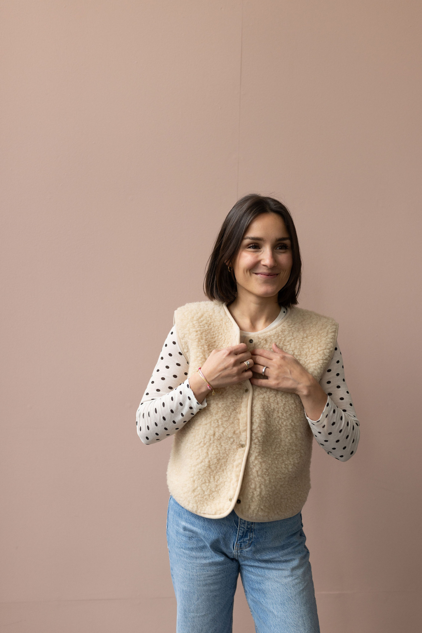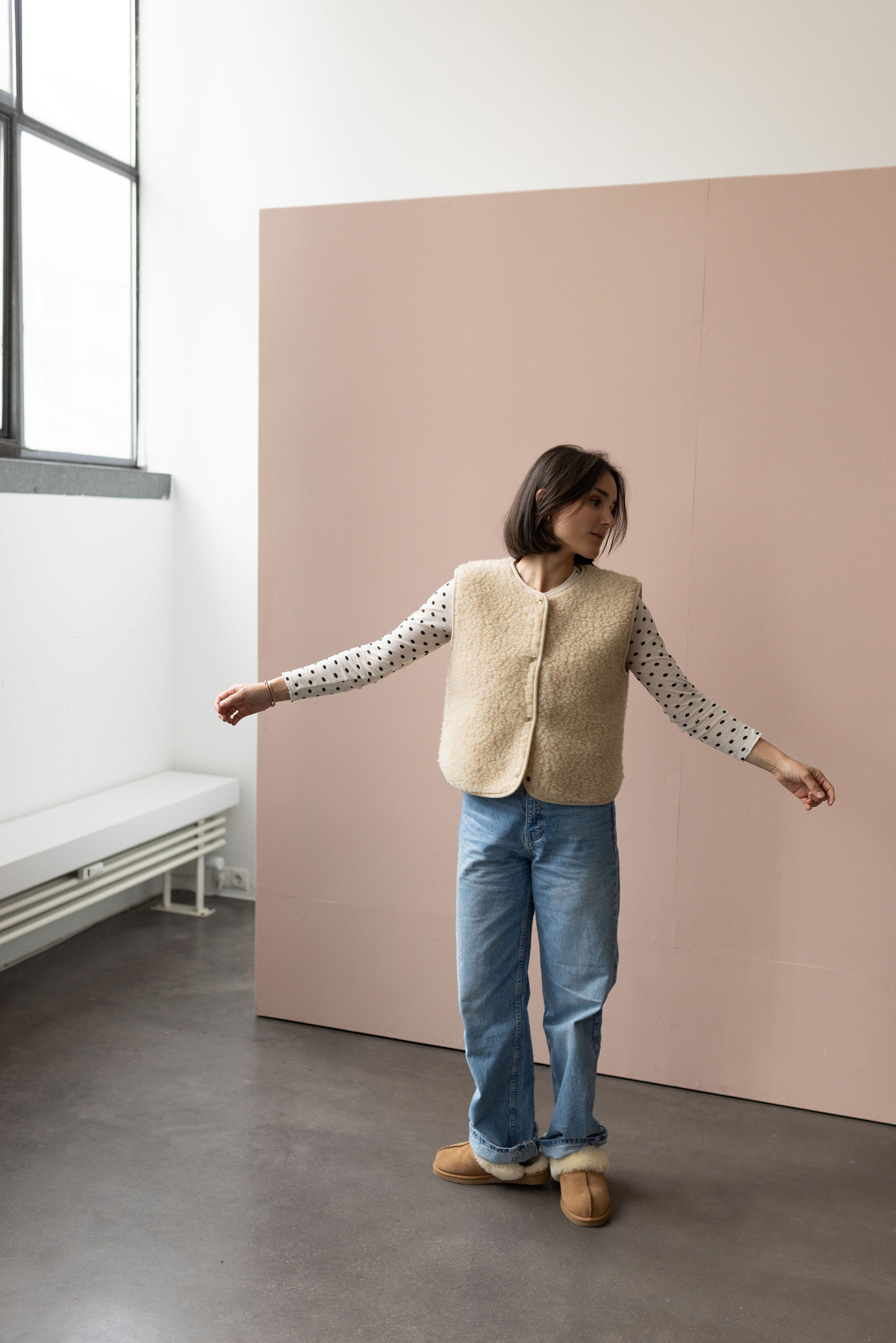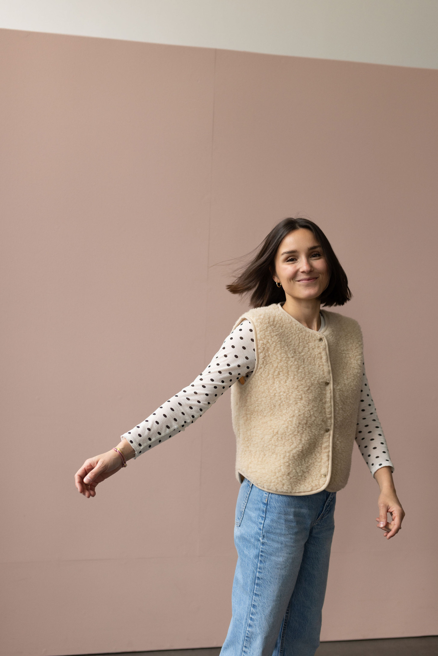Ob als Zwischenschicht, über dem T-Shirt oder Pullover getragen oder besonders stilvoll in Kombination mit einem Kleid oder Hemd: Die Weste „Romi“ hält warm, ohne einzuengen, und verleiht jedem Look einen besonderen Touch. 🥰