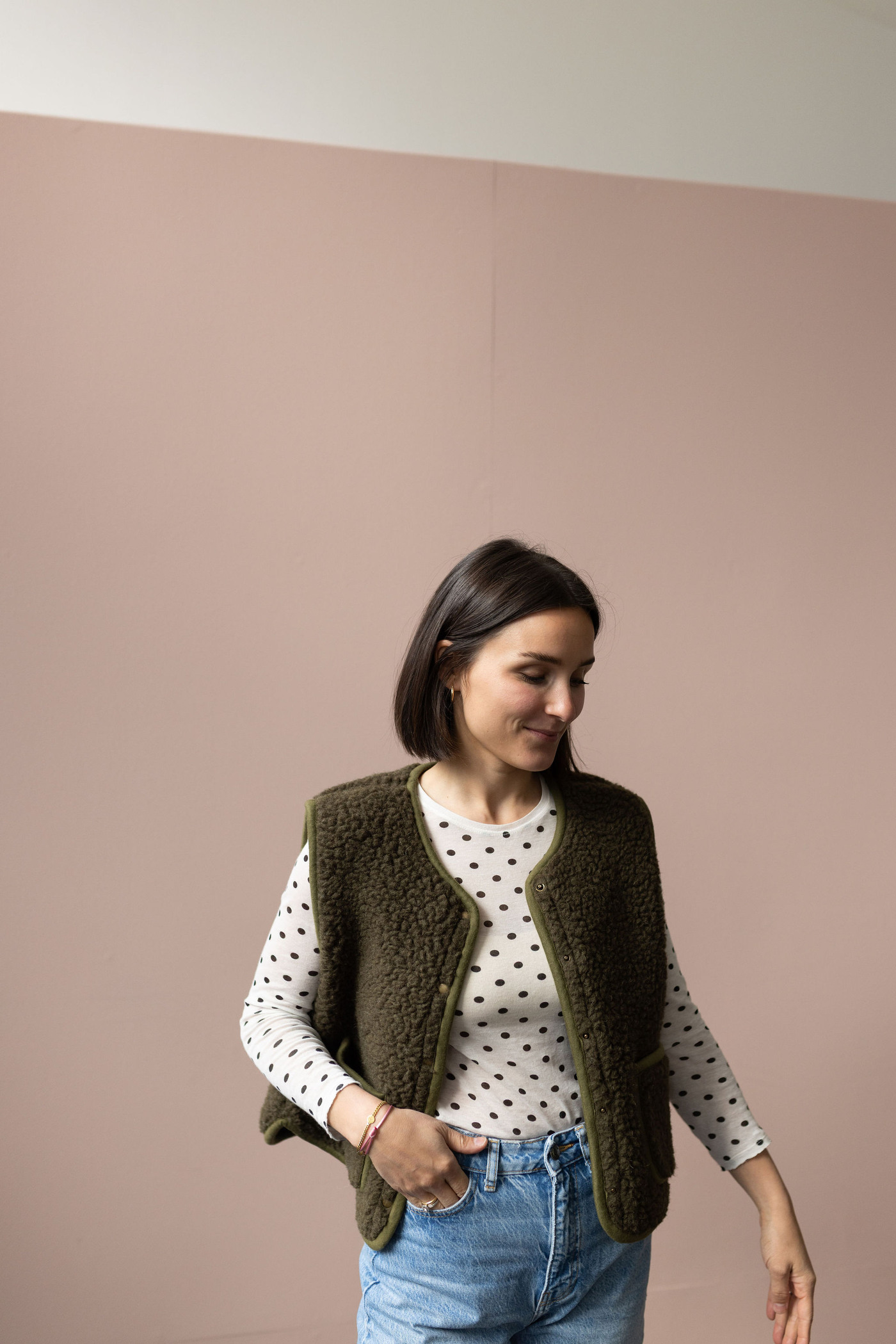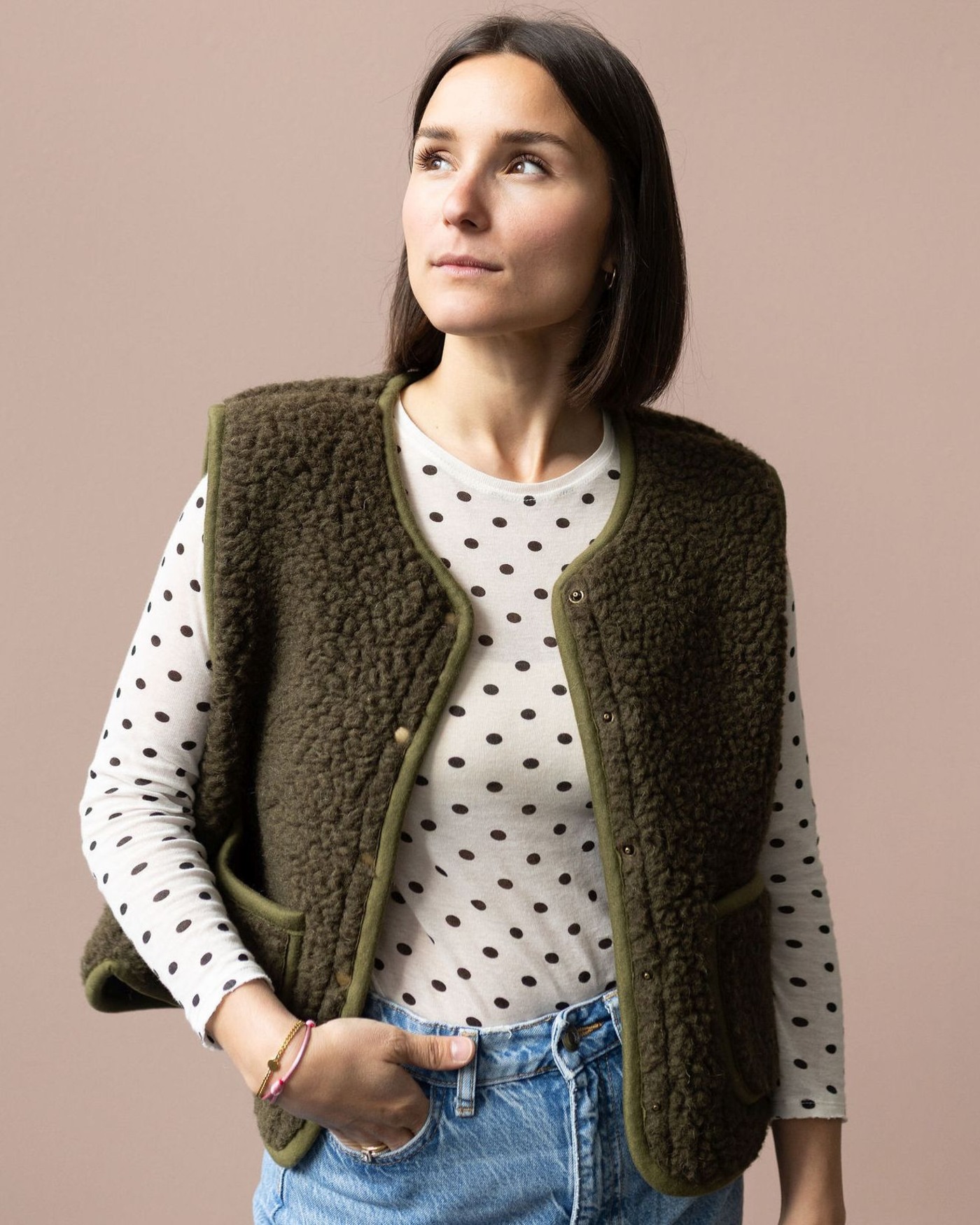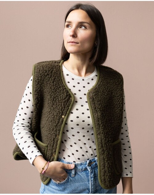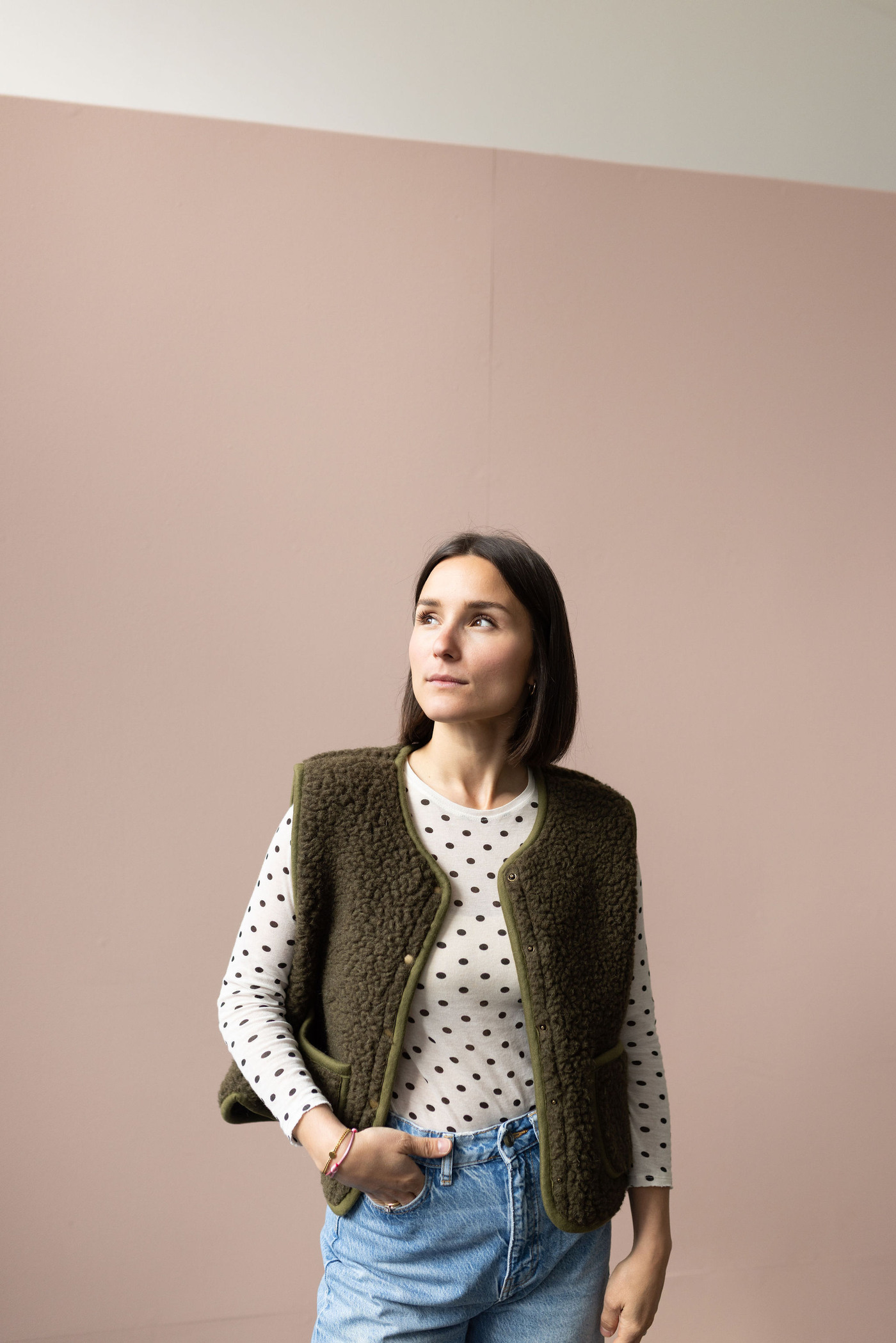Ob als Zwischenschicht, über dem T-Shirt oder Pullover getragen oder besonders stilvoll in Kombination mit einem Kleid oder Hemd: Die Weste „Romi“ hält warm, ohne einzuengen, und verleiht jedem Look einen besonderen Touch. 🥰