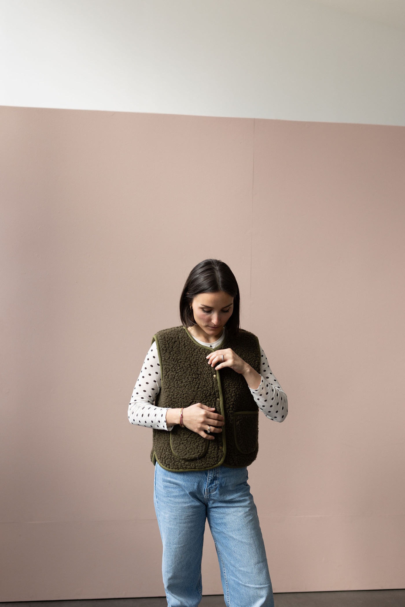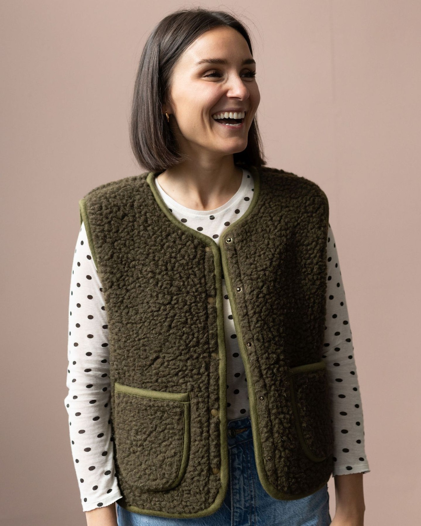 Wollbebi Woll-Weste 'Dotti' für Damen mit Taschen aus Schurwolle - Olive