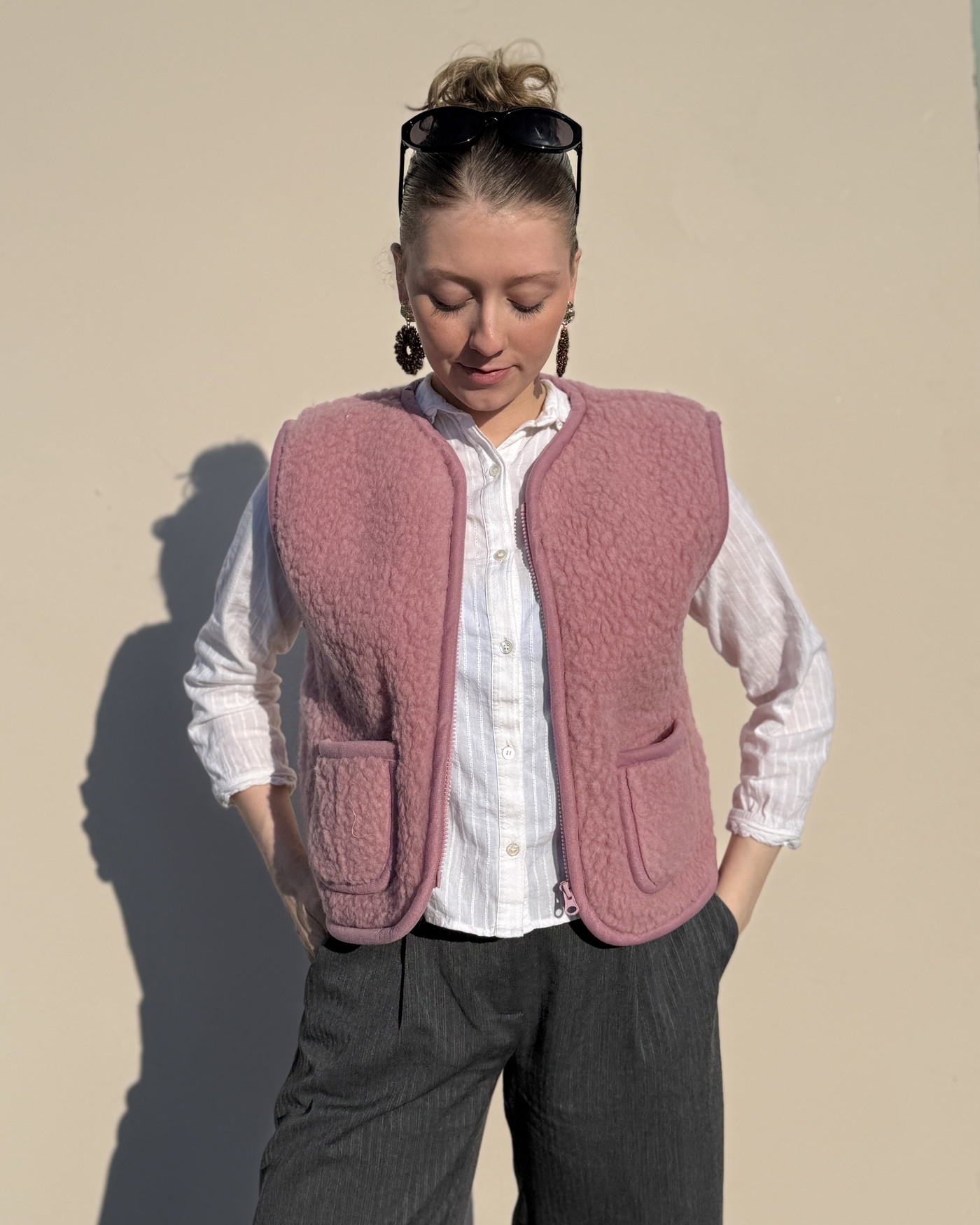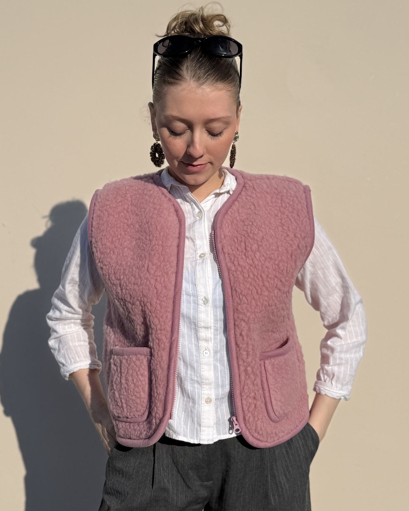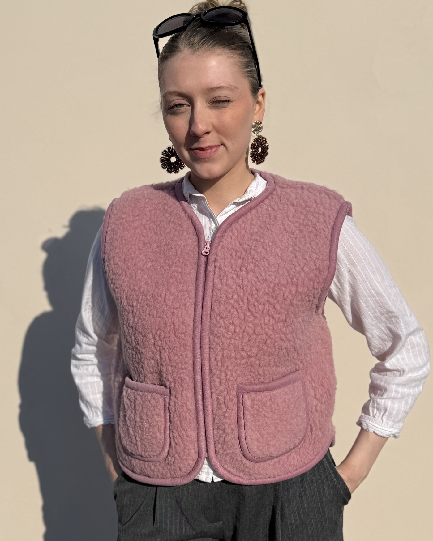 Wollbebi Woll-Weste 'Romi' für Damen mit Taschen aus Schurwolle - Puderrosa 💗